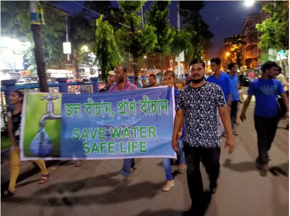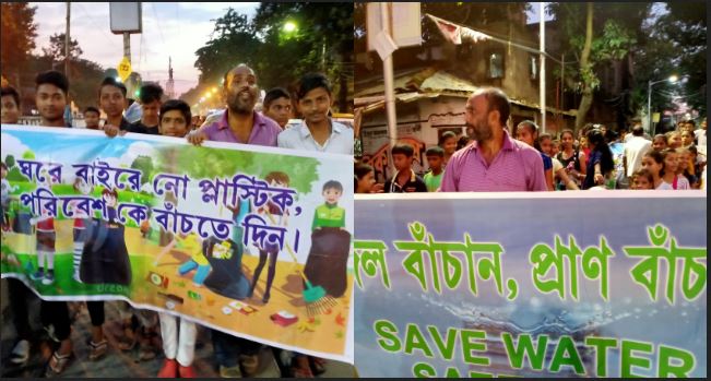 সারা বিশ্ব যখন জল অপচয় নিয়ে মানুষের মধ্যে সচেতনতা বৃদ্ধিতে বিভিন্ন অনুষ্ঠানের আয়োজন করছে, তখন কলকাতার 29 নম্বর ওয়ার্ডের সমাজসেবী বিট্টু সিং এর উদ্যোগে শনিবার এমনই একটি ব়্যালি হয়ে গেল শহরে। জল অপচয় বন্ধ করার বিষয়ে শহরবাসীকে সচেতন করার পাশাপাশি, গাছ কাটার কুফল এবং বেশি করে গাছ লাগানোর সুফল মানুষের কাছে তুলে ধরা হয় এই ব়্যালির মাধ্যমে। এমনকি প্লাস্টিকের ব্যবহার বর্জন করার বিষয়ে সচেতনতা বৃদ্ধিতেও জোর দেওয়া হয়। এলাকার বিভিন্ন স্কুলের ছাত্র-ছাত্রী এবং এলাকার মানুষ বাগমারি বাজার থেকে শুরু হয়ে কাঁকুড়গাছি পৌঁছায় এবং ফের সেখান থেকে তারা বাগমারি ফিরে আসেন। এলাকার প্রায় 200 ছাত্রছাত্রী ও স্থানীয় মানুষ এই ব়যালিতে অংশ নেন। তাদের হাতে ছিল বিভিন্ন প্ল্যাকার্ড এবং সংশ্লিষ্ট বিষয়ের ওপর বিভিন্ন ছবি। বিট্টু সিং জানিয়েছেন, আগামী দিনে আরও বড় আকারে এই ধরণের অনুষ্ঠান তিনি আয়োজন করবেন।