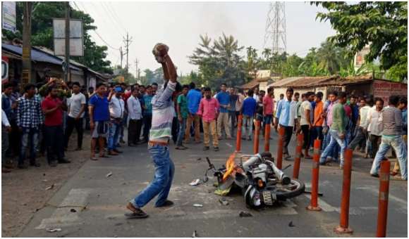 কালনায় বাস উল্টে দু’জনের মৃত্যু ও ৪৫জন জখম হওয়ার ঘটনায় এলাকায় ব্যাপক উত্তেজনা। দুর্ঘটনাস্থল ও কালনা হাসপাতালের সামনে পথ অবরোধ চলছে। বাইকে অগ্নিসংযোগ, পুলিশের গাড়ি ভাঙচুর করা হয়েছে।