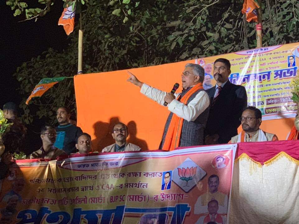 একদিকে যখন কলকাতা সরকার এবং বিরোধী দলগুলির এনআরসি ও সিএএ বিরোধী আন্দোলনে উত্তাল, তখন মেদিনীপুরে দাঁড়িয়ে এন আরসির পক্ষে সওয়াল করে মুখ্যমন্ত্রীকে আক্রমণ করলেন বিজেপি রাজ্য সভাপতি দিলীপ ঘোষ। পশ্চিম মেদিনীপুরের চন্দ্রকোণা রোডে দলের কর্মসূচিতে অংশ নিয়ে প্রথমে মিছিল এবং পরে সভা থেকে মুখ্যমন্ত্রীকে আক্রমণ করলেন। হিটলারের সঙ্গে তুলনা করলেন। বললেন, বাংলায় স্বৈরাচারী শাসন চলবে না। মানুষ জবাব দেবে। গুণ্ডারা গর্তে ঢুকে গিয়েছে। বাইরে বেরলে পিঠের চামড়া তুলে দেওয়া হবে। কেন্দ্রের সব সুযোগ নিয়ে যাচ্ছে অনুপ্রবেশকারীরা। এদের আগে তাড়াব। দিদিমনি তাতেই ভয় পেয়ে গিয়েছে। ভোট চলে যাবে।