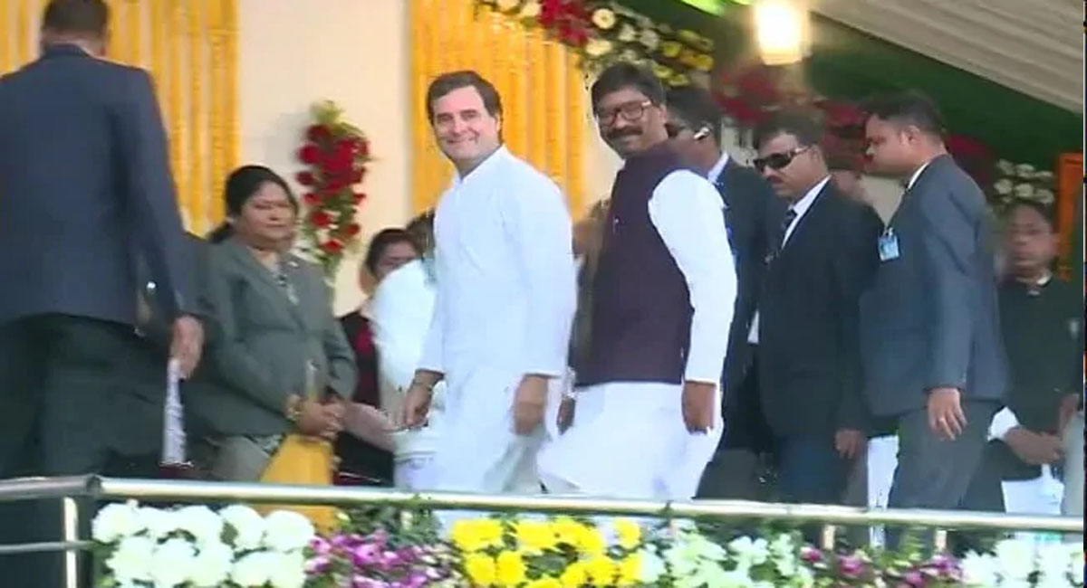 ঝাড়খণ্ডের নয়া মুখ্যমন্ত্রী হিসেবে আর কিছুক্ষণের মধ্যেই রাঁচিতে শপথ নিতে চলেছেন ঝাড়খণ্ড মুক্তি মোর্চা নেতা হেমন্ত সোরেন। সেই শপথ গ্রহণ অনুষ্ঠানে উপস্থিত মমতা বন্দ্যোপাধ্যায়, রাহুল গান্ধী, অশোক গেহলট, ডি রাজা. কানিমোজি, সীতারাম ইয়েচুরি, এমএস্ট্যালিন, তেজস্বী যাদব, কমলনাথ প্রমুখ। বিরোধী ঐক্যের মঞ্চ হয়ে উঠল এই শপথ গ্রহণ অনুষ্ঠান। উপস্থিত আছেন শিবু সোরেনও।