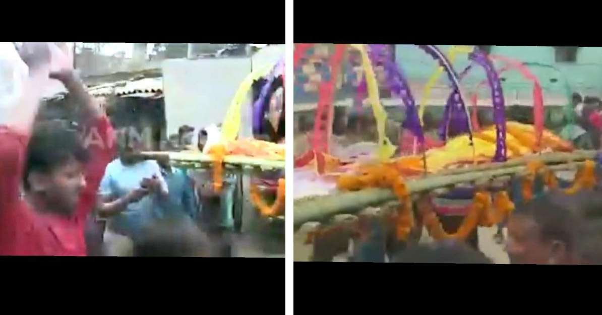 এই না হলে নাতি। দাদু মারা গিয়েছেন। শ্মশানযাত্রায় তাই উদ্দাম আনন্দ। সেই আনন্দে বাজল ডিজে, উড়ল আবির, হল কোমর দুলিয়ে নাচ। মহানন্দ।