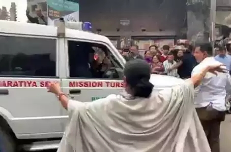 অ্যাম্বুল্যান্সটি পার হয়ে যাওয়ার পর মমতা বন্দ্যোপাধ্যায়ের নেতৃত্বে