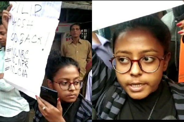 জানা গিয়েছে, ওই ছাত্রীর নাম সুদেষ্ণা দত্তগুপ্ত। সংস্কৃত কলেজের ছাত্রী। এদিন বিজেপির অভিনন্দন যাত্রার শেষে মিছিলের সামনে দিলীপ ঘোষ গিয়ে সে একাই “গো ব্যাক প্ল্যাকার্ড”ও দেখায়।