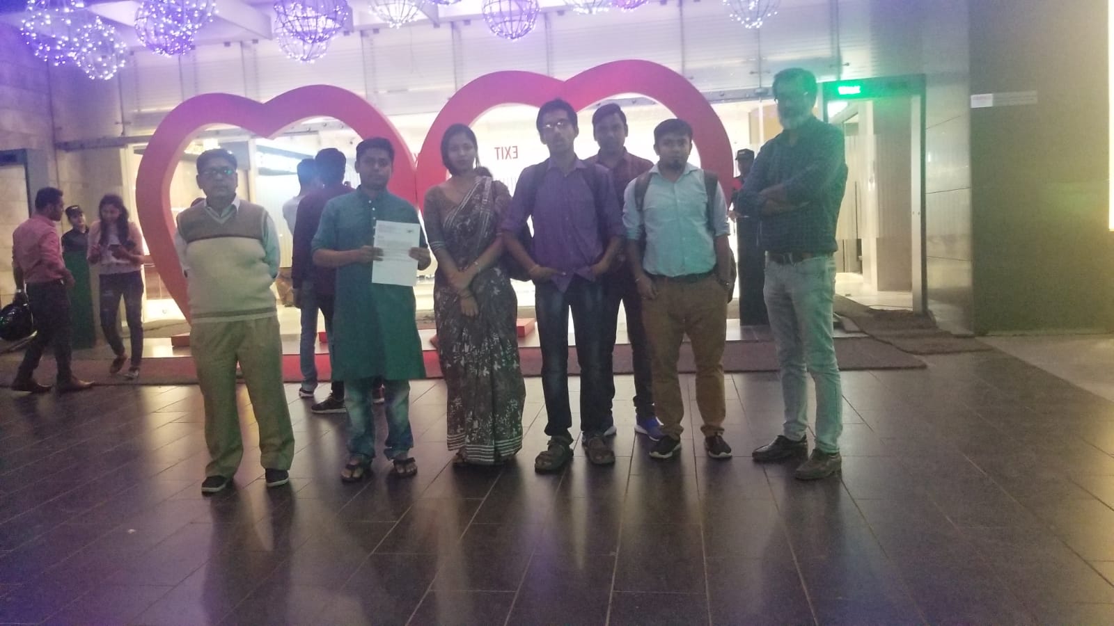 প্রথমে দাবি পত্র জমা নিতে আবার অস্বীকার করেন উপস্থিত কর্মচারীরা। পরবর্তীতে দাবি পত্র জমা নিলেও, ক্ষমা চাইতে অস্বীকার করেন তারা। এই পর্যায়ে মলে অবস্থান বিক্ষোভ শুরু করেন ঐক্য বাংলা প্রতিনিধিরা। আলোচনা শুনে এগিয়ে আসেন উপস্থিত বাঙালি গ্রাহক মন্ডলীর অনেকেই। তারা জানান তারা সামাজিক মাধ্যমে ঘটনাটির বিষয়ে অবগত আছেন। বহু বাঙালি ঘটনাটির নিন্দা করেন এবং মল কর্তৃপক্ষকে ক্ষমা চেয়ে নিতে অনুরোধ করেন। ঐক্য বাংলা যোদ্ধাদের লাগাতার আন্দোলন এবং উপস্থিত বাঙ্গালী জনতার চাপে অবশেষে ইমেইলে সৌম্যদীপ এবং ঐক্য বাংলা সংগঠনের কাছে ক্ষমা চেয়ে নেয় মল কর্তৃপক্ষ।