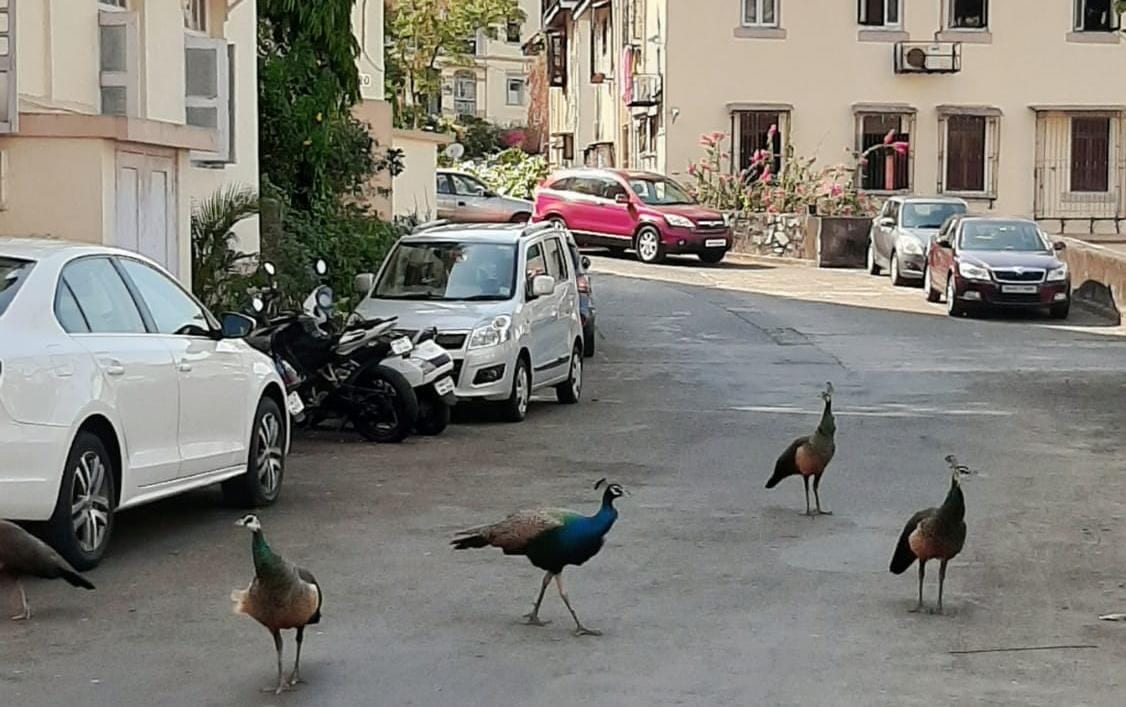 চলছে লকডাউন। কারণ মারণ করনা ভাইরাস থাবা বসিয়েছে ভারতেও। ফাঁকা বহু রাস্তা। মুম্বাইয়ের রাস্তার একই অবস্থা। এরই মাঝে সেখানে দেখা মিলল ময়ূরের। মুম্বইয়ের বাবুলনাথ এলাকার খারেঘাট কলোনির এমনই একটি সুন্দর ছবি সোশ্যাল মিডিয়ায় শেয়ার করেছেন বলিউড অভিনেত্রী জুহি চাওলা। সেই পোস্টে দেখা যাচ্ছে তাঁর বাড়ির ছাদেও এসে বসেছে ময়ূর।