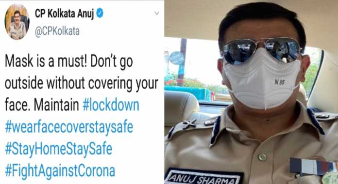 মাস্ক পরা নিজের ছবি সংযুক্ত করে সাধারন মানুষের কাছে টুইটে এই আবেদন জানালেন কলকাতার নগরপাল অনুজ শর্মা৷