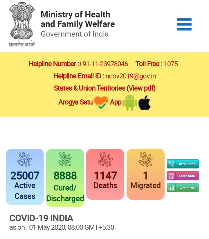 ◾ভারতে এখন মোট করোনারোগীর সংখ্যা ৩৫,০৪৩।