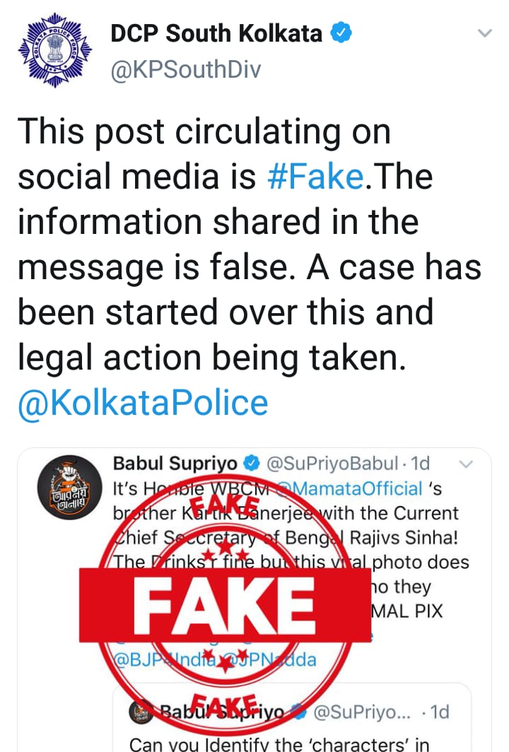 বাবুলের এই পোস্টের বক্তব্য এবং ছবিটিকেই জাল বা ‘ফেক’ এবং ‘ফলস’ বলে অভিযোগ এনেছে কলকাতা পুলিশ ৷ পুলিশের তরফে এক টুইটে বলা হয়েছে,