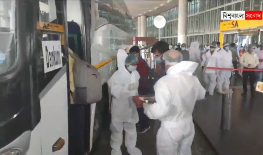 সোমবার দুপুর ১টা নাগাদ ১৬৯ জন যাত্রী নিয়ে কলকাতা বিমানবন্দরে পৌঁছায় এয়ার ইন্ডিয়ার বিমান। ঢাকা থেকে বিমানে ওঠার পর এক দফা শারীরিক পরীক্ষা করা হয় যাত্রীদের। দমদম বিমানবন্দরে পৌঁছনোর পরও, আরেক দফা শারীরিক পরীক্ষা করা হয়। লক ডাউনের পর যাত্রীদের নিয়ে এই প্রথম কোনও বিমান কলকাতা বিমানবন্দরের রানওয়ে ছুঁল।