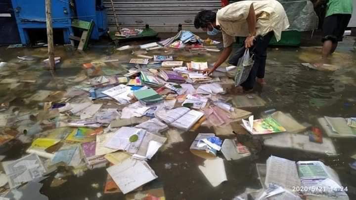 একে লকডাউন, তার আমফান দোসর! আতান্তরে কলেজ স্ট্রিটের বই বিক্রেতারা। বুধবার বিকেল থেকে বৃহস্পতিবার ভোর পর্যন্ত টানা বৃষ্টিতে জলমগ্ন কলেজস্ট্রিট অঞ্চল। তার উপর বুধবার সন্ধের ঘূর্ণিঝড়ের অনেক দোকানেরই প্লাস্টিক খুলে বই পড়ে গিয়েছে রাস্তার জমা জলে। মুহূর্তে নষ্ট হয়ে গিয়েছে সেগুলি। এখন বইপাড়ার রাস্তায় ভেসে বেড়াচ্ছে বইয়ের শব।