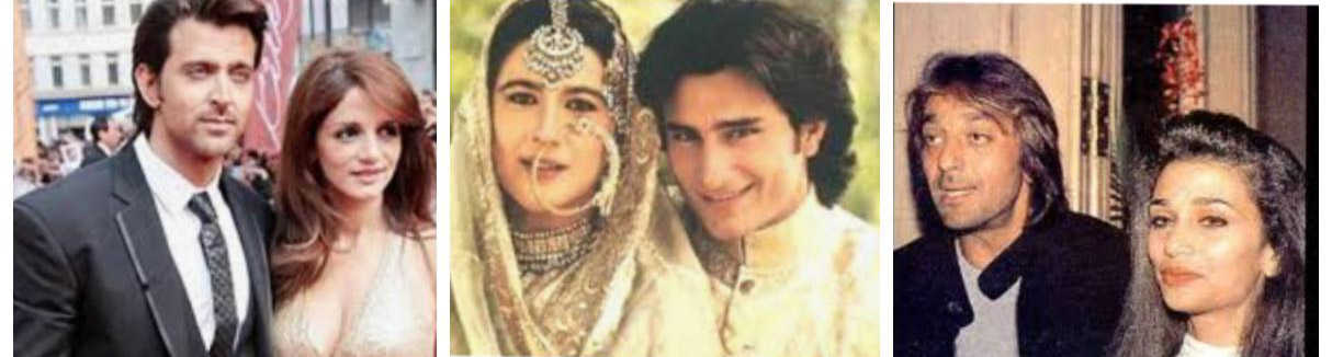 হঠাৎ করেই বিয়ে হয়েছিল অমৃত সিং এবং সইফ আলী খানের। যে বিয়ে পতৌদি পরিবার মেনে নিতে পারেনি। শেষমেষ বিয়ের ১৩ বছর পর বিচ্ছেদ হয় দুজনের। এক সাক্ষাৎকারে সইফ জানিয়েছিলেন, “অমৃতা পাঁচ কোটি টাকা দাবি করেছেন। ছেলের ১৮ বছর বয়স পর্যন্ত প্রতি মাসে ১ লক্ষ টাকা দিতে হবে।” সঞ্জয় দত্ত এবং রিয়া পিল্লাইয়ের বিবাহ বিচ্ছেদ হয় ২০০৮ সালে। শোনা যায়, টেনিস তারকা লিয়েন্ডার পেজের সঙ্গে সম্পর্কে জড়িয়ে পড়েন রিয়া। খোরপোষ হিসাবে একটা বড় অ্যাপার্টমেন্ট এবং গাড়ি দেওয়া হয় রিয়াকে। এমনকী যাবতীয় বিল মিটিয়েছে দত্ত পরিবার।