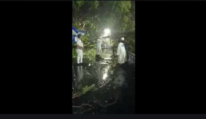 সেই বুধবার, সেই ঝড়। মাঝে কেটে গেছে একটা সপ্তাহ। আমফানের স্মৃতি উসকে 96 কিলোমিটার প্রতি ঘণ্টা বেগে বুধবার সন্ধেয় বয়ে গেল কালবৈশাখী। এই ঝড়ের দাপটেও কলকাতায় বেশ কিছু জায়গায় গাছ উপড়ে পড়েছে। এক মুহূর্ত সময় নষ্ট না করে রাস্তায় নেমে পড়েছিলেন কলকাতা ট্রাফিক পুলিশকর্মীরা। ইস্ট ট্রাফিক গার্ড এবং সাউথ-ইস্ট ট্রাফিক গার্ডের কর্মীরা রাস্তা পরিষ্কার করতে হাত লাগান। অন্ধকারে গাছ কেটে পরিস্থিতি স্বাভাবিক করার চেষ্টা করেন তাঁরা।