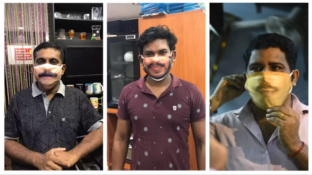 কেরলের কোট্টায়াম শহরের বাসিন্দা বিনেশ পাল। নিজের স্টুডিওতেই অর্ডার মাফিক এমন মাস্ক তৈরি করে দিচ্ছেন। একটি মাস্কের দাম ৬০ টাকা। কিন্তু হঠাৎ এমন ভাবনা কেন? বিনেশ জানান, লকডাউন শুরু হওয়ার পর একদিন মাস্ক পরে পাড়ার দোকানে যাই। কিন্তু দোকানদার আমায় চিনতে পারেননি। তখনই ঠিক করি এই সমস্যা দূর করতে হবে। স্টুডিও পার্সোনালাইজ টি-শার্ট, কফি মগ ছাপার পাশাপাশি মাস্ক তৈরি শুরু করি।” বিনেশ জানিয়েছেন একটা মাস্ক তৈরি করতে সময় লাগছে ১৫ মিনিট। ইতিমধ্যেই তিন হাজার মাস্ক বানিয়ে ডেলিভারি করেছেন। এখনও হাজার পাঁচেক অর্ডার রয়েছে। শুধু একটাই শর্ত বিনেশের হাসি মুখে ছবি দিতে হবে। তবেই মাস্ক বানাবেন তিনি।