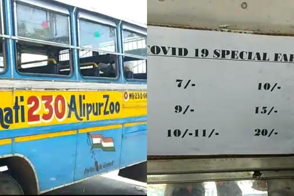 বাসে নোটিশ টাঙানো হয়েছে যে করোনা পরিস্থিতির জেরে নতুন ভাড়া নেওয়া হচ্ছে। যত আসন তত যাত্রী নিয়ে এই রুটে বৃহস্পতিবার বাস চলে। এই ভাবে সরকারি নির্দেশ ছাড়া ভাড়া বৃদ্ধি হওয়ায় অসন্তোষ ছড়িয়েছে 230 রুটের বাসযাত্রীদের মধ্যে।