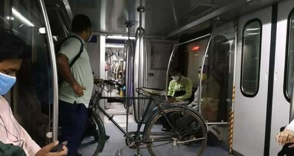 মেট্রো সূত্রে খবর, লকডাউনের কারণে মেট্রো পরিষেবা এখনও বন্ধ। সকাল বিকেল দু’টি করে ট্রেন চলছে। আর তাতে শুধুমাত্র মেট্রো কর্মীরাই এক স্টেশন থেকে অন্য স্টেশনে যাচ্ছেন। বিশেষ এই ট্রেনকে ‘স্টাফ স্পেশ্যাল’ নাম দেওয়া হয়েছে। এই ট্রেন প্রত্যেকদিন সকাল ১০টা নাগাদ কবি সুভাষ এবং নোয়াপাড়া থেকে ছাড়ছে। এবং বিকেল চারটে নাগাদ ওই দুই স্টেশনে ফিরছে। নিয়ম মেনে প্রতিটি স্টেশনে থামছে ট্রেন। ফলে বোঝা যাচ্ছে ওই ব্যক্তি মেট্রোরই কর্মী। মেট্রো কর্তৃপক্ষের তরফ থেকে জানানো হয়েছে, দ্রুত ওই কর্মীকে চিহ্নিত করে ব্যবস্থা নেওয়া হবে। তিনি সাইকেল নিয়ে মেট্রোয় উঠে ঠিক কাজ করেননি। তাঁরা আরও জানান, সিসিটিভি ফুটেজ খতিয়ে দেখে ওই যাত্রীকে চিহ্নিত করার কাজ হবে। মেট্রো রেলের মুখ্য জনসংযোগ আধিকারিক ইন্দ্রাণী বন্দ্যোপাধ্যায় বলেন, “আমরা বিষয়টি দেখছি। দ্রুত ব্যবস্থা নেওয়া হবে।”