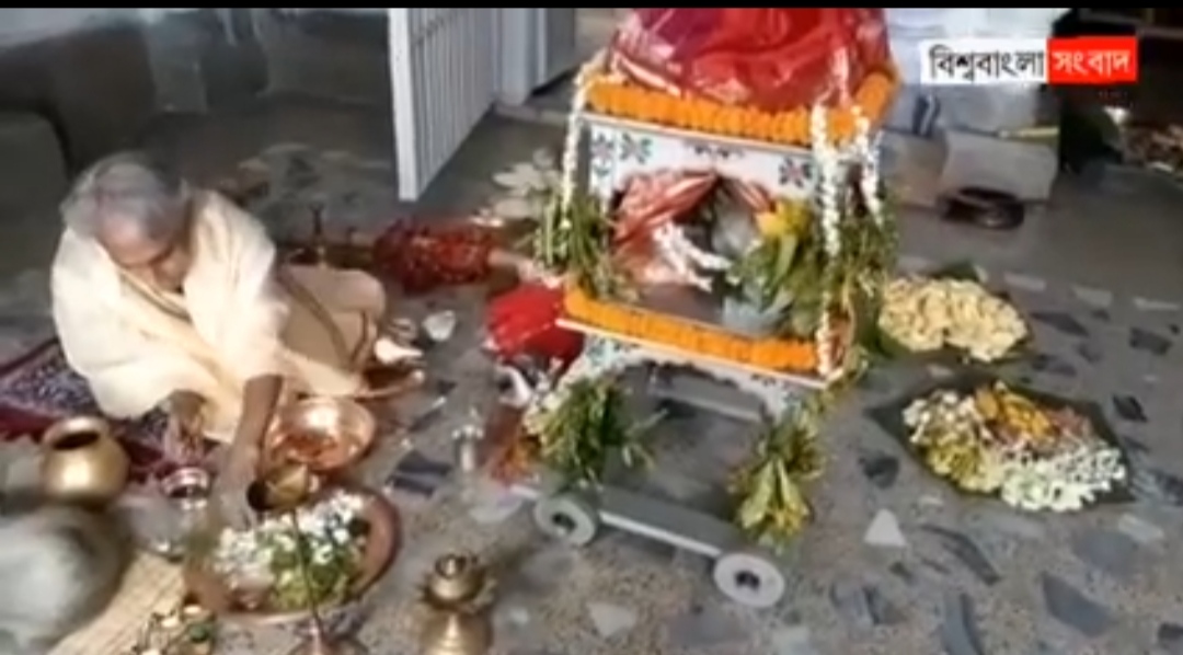 করোনা আবহতেই রথযাত্রায় কাঠামো পুজোর মধ্যে মা দুর্গার আগমনের বার্তা শোভাবাজার রাজবাড়িতে