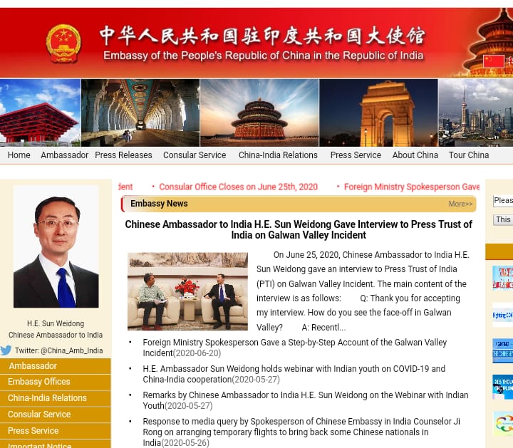 অবশেষে মুখ খুলে ভারতে নিযুক্ত চিনা রাষ্ট্রদূত সং ওয়েইডং-এর স্বীকারোক্তি, সেদিন চিনা সেনাও গালওয়ানে নিহত হয়েছে৷ পাশাপাশি নানা যুক্তি সাজিয়ে গালওয়ানের দায় ভারতের ঘাড়েই চাপিয়েছেন তিনি৷