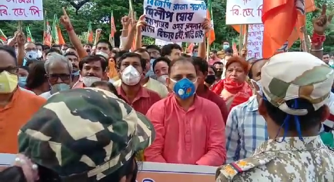 কিন্তু কেন্দ্রের তরফে জামায়াতে নিষেধাজ্ঞা থাকলেও, এদিন বিজেপি থানা ঘেরাও অভিযানে যথেষ্ট সংখ্যক লোক ছিল। শুধু তাই নয়, সামাজিক দূরত্ব বৃদ্ধি সামান্যতম মানা হয়নি।