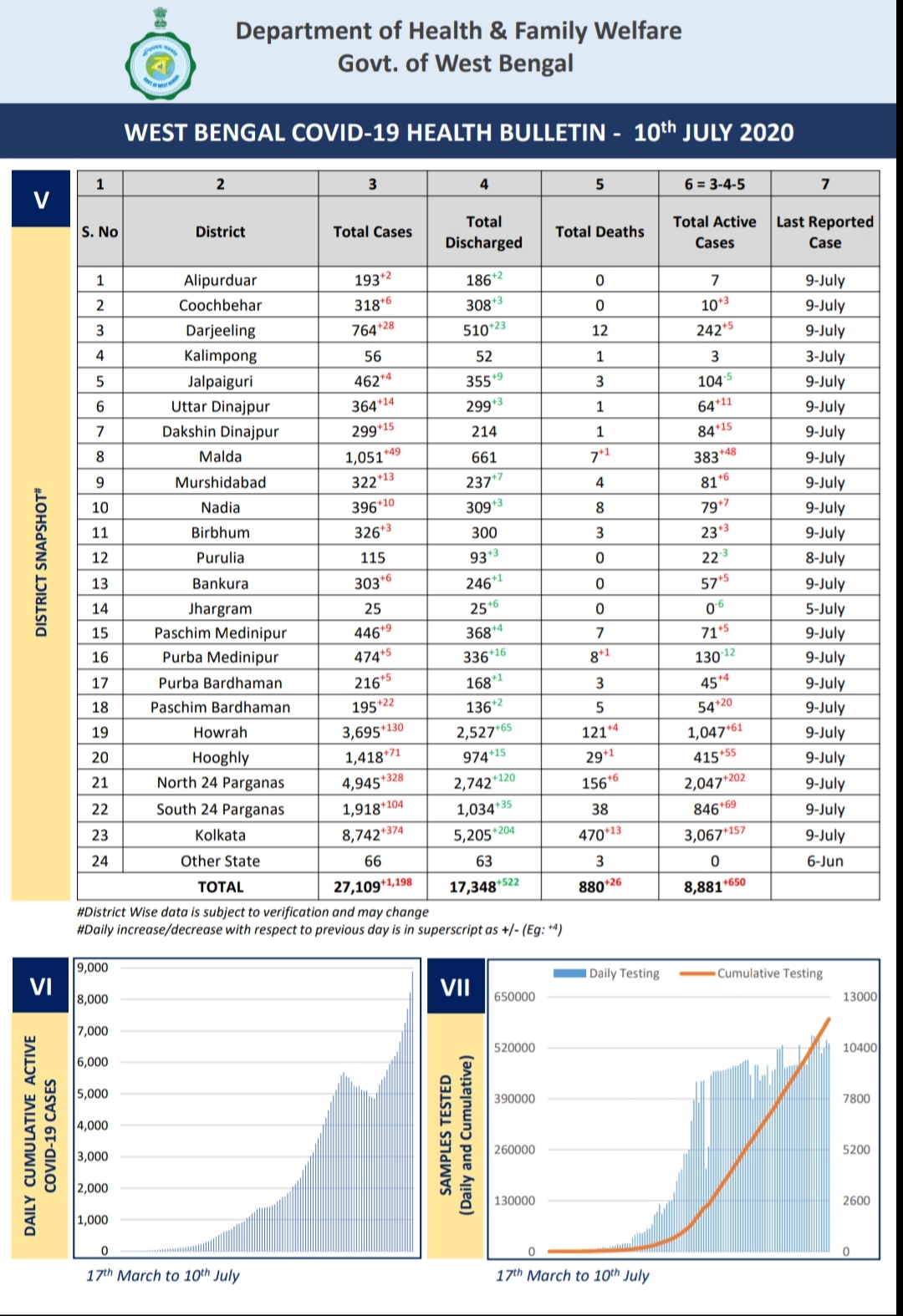 সারা দেশের সঙ্গে তাল মিলিয়ে এ রাজ্যেও করোনার গ্রাফ ঊর্ধ্বমুখী। যতদিন যাচ্ছে লাফিয়ে বাড়ছে সংক্রমণ ও মৃতের সংখ্যা। প্রতি ২৪ ঘন্টায় ভেঙে যাচ্ছে আগের ২৪ ঘন্টার রেকর্ড।