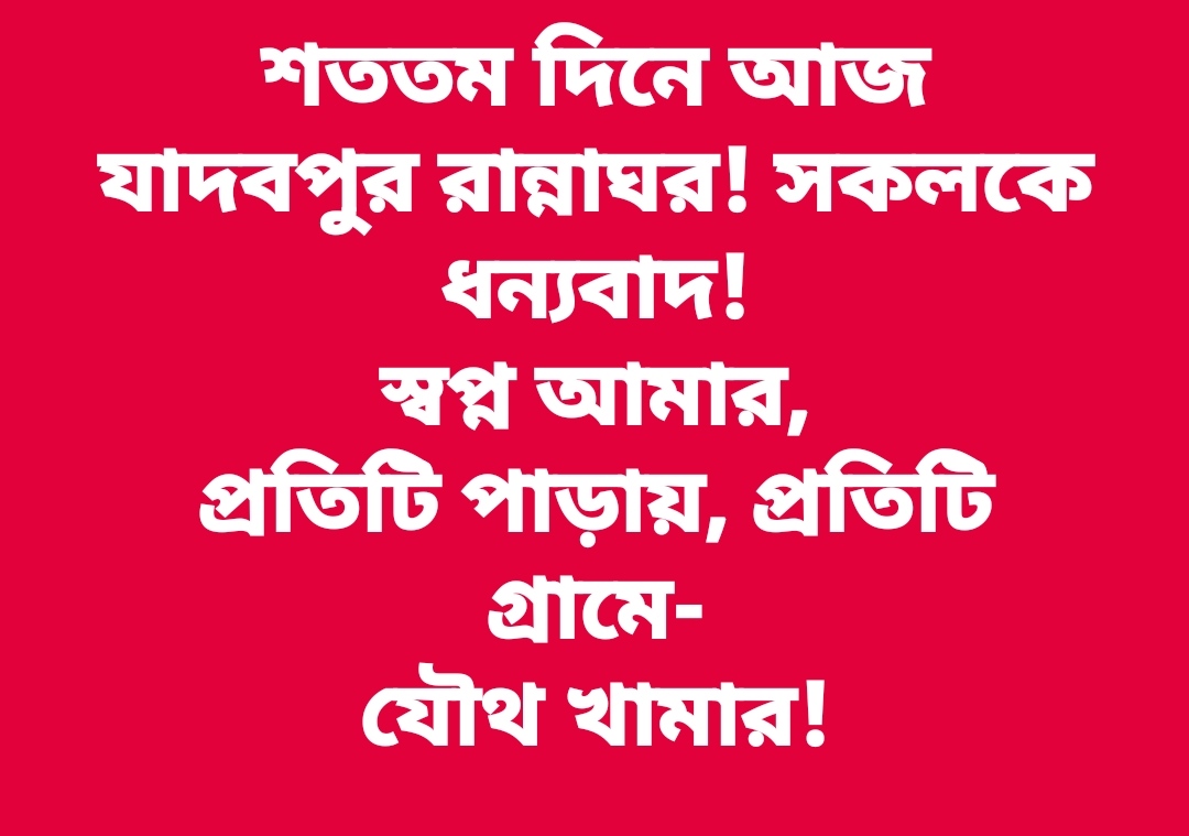 যাদবপুরে বামেদের কমিউনিটি কিচেন আজ ১০০ তম দিনে পা রাখলো। যা কার্যত এক মাইল স্টোন। যেটা স্থানীয় সিপিএম তথা বাম নেতৃত্বের কাছে স্বপ্নের মতো মনে হচ্ছে।