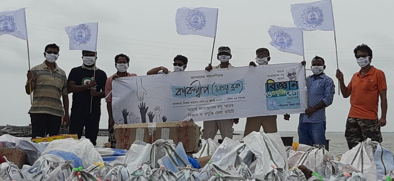 রবীন্দ্রনাথের ‘শিশু’, অবন ঠাকুরের ‘নালক’, বঙ্কিমচন্দ্রের ‘আনন্দমঠ’, শরৎচন্দ্রের ‘রামের সুমতি’, উপেন্দ্রকিশোরের ‘টুনটুনির বই’৷ এমনই শ’দুয়েক বই এবং তার সঙ্গে ত্রিপল, মশারি, খেলনা-সহ ২৭ রকমের সামগ্রী রবিবার কাকদ্বীপের সাগর ব্লকের সাপখালি অঞ্চলের আমফান দুর্গত মানুষের হাতে তুলে দিলো ‘আচার্য সত্যেন্দ্ৰনাথ বসু স্মারক বিজ্ঞান ও প্রযুক্তি মেলা কমিটি’৷ উপস্থিত ছিলেন স্থানীয় বিধায়ক বঙ্কিম হাজরা, স্থানীয় বিডিও সুদীপ্ত মন্ডল৷ এই উদ্যোগের সহযোগিতায় পশ্চিমবঙ্গ বিজ্ঞান মঞ্চ৷