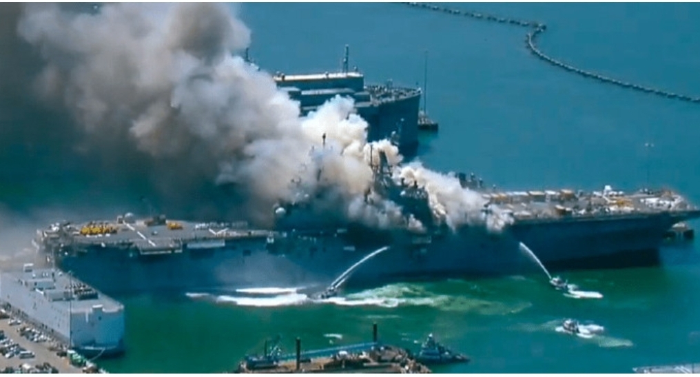 মাঝ সমুদ্রে দাউ দাউ করে জ্বলছে জাহাজ । ঘটনায় গুরুতর আহত হন ২১ জন । ঘটনাটি ঘটেছে রবিবার। মার্কিন নেভির সেই জাহাজে বিস্ফোরণের পর আহত ১৭ জন নাবিক ও চার জন স্থানীয় নাগরিককে হাসপাতালে নিয়ে যাওয়া হয়। তবে তাঁদের প্রাণ সংশয় নেই বলে জানিয়েছে মার্কিন নৌবাহিনী।