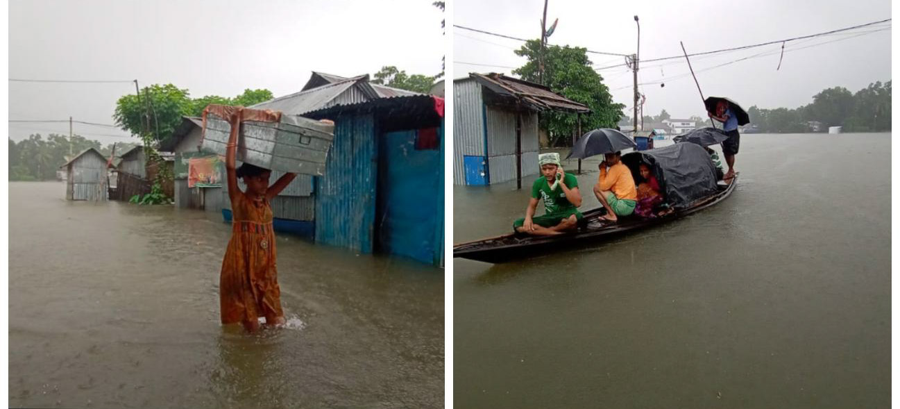 সোমবার সকাল থেকেই কোচবিহারে বন্যা পরিস্থিতি ভয়াবহ আকার ধারণ করেছে। তুফানগঞ্জের রায়ডাক এক নম্বর নদীতে রবিবার রাত থেকেই লাল সতর্কতা জারি। জল ক্রমাগত বাড়তে বাড়তে পুর এলাকার ৫ নম্বর ওয়ার্ড, পঞ্চায়েত এলাকার কামাক ফুলবাড়ি এলাকায় ঢুকে পড়েছে। কয়েক হাজার মানুষ বন্যা কবলিত। ইতিমধ্যেই তৎপরতার সঙ্গে ৬০০ পরিবারকে উদ্ধার করেছে তুফানগঞ্জ মহকুমার প্রশাসন এবং পুরসভা। তাঁদের স্থানীয় ইলা দেবী প্রাথমিক বিদ্যালয়, এন এম এম হাই স্কুল, ইলা দেবী হাইস্কুলে রাখা হয়েছে।