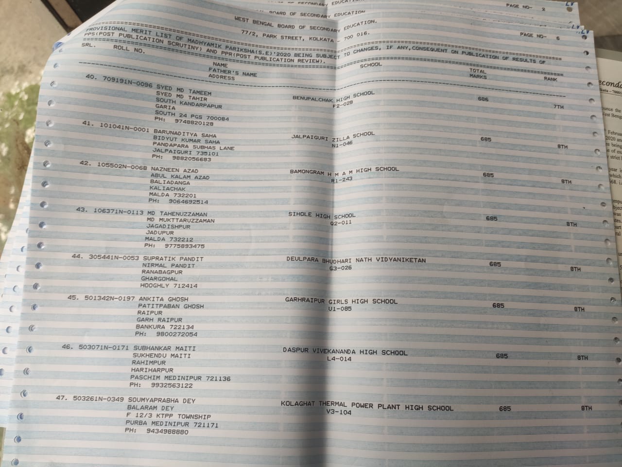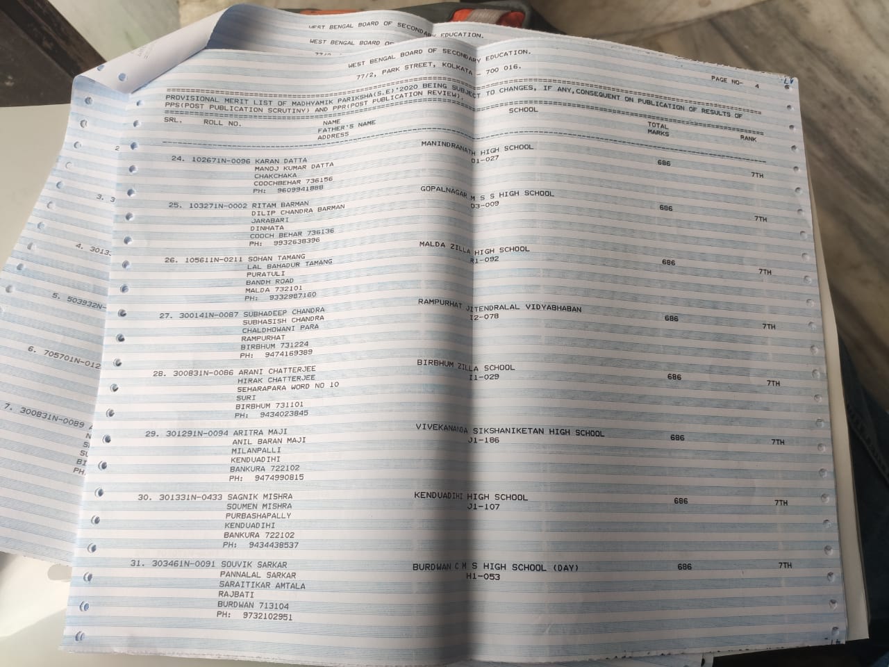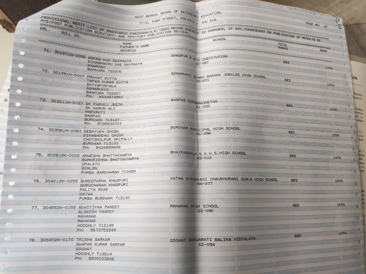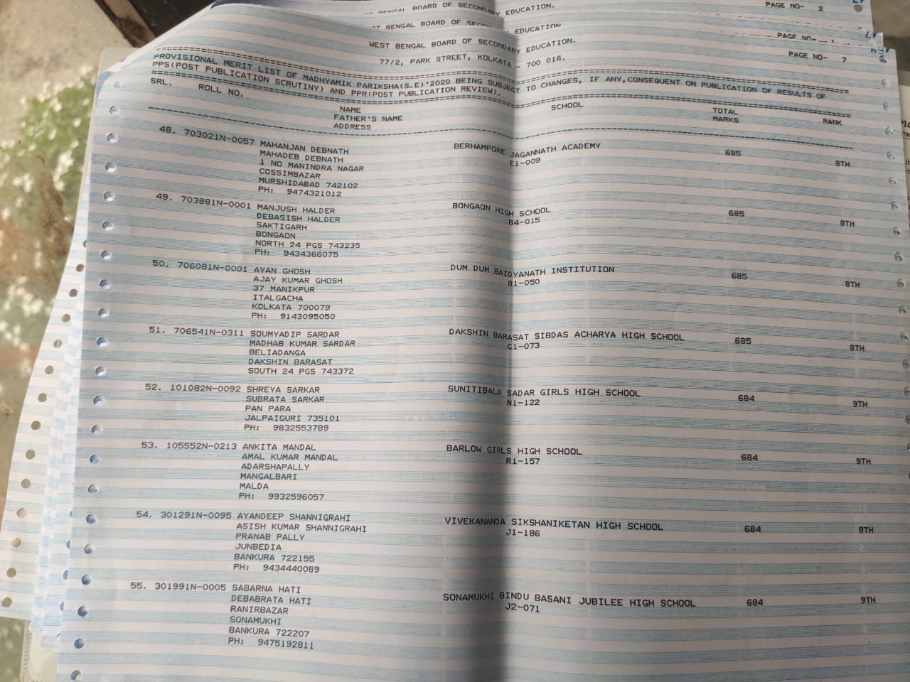একনজরে মাধ্যমিকের মেধাতালিকা
