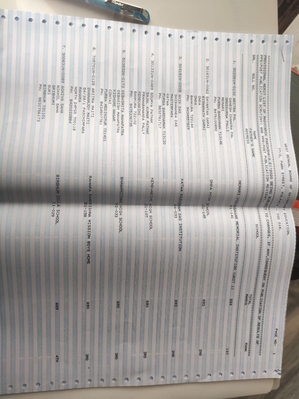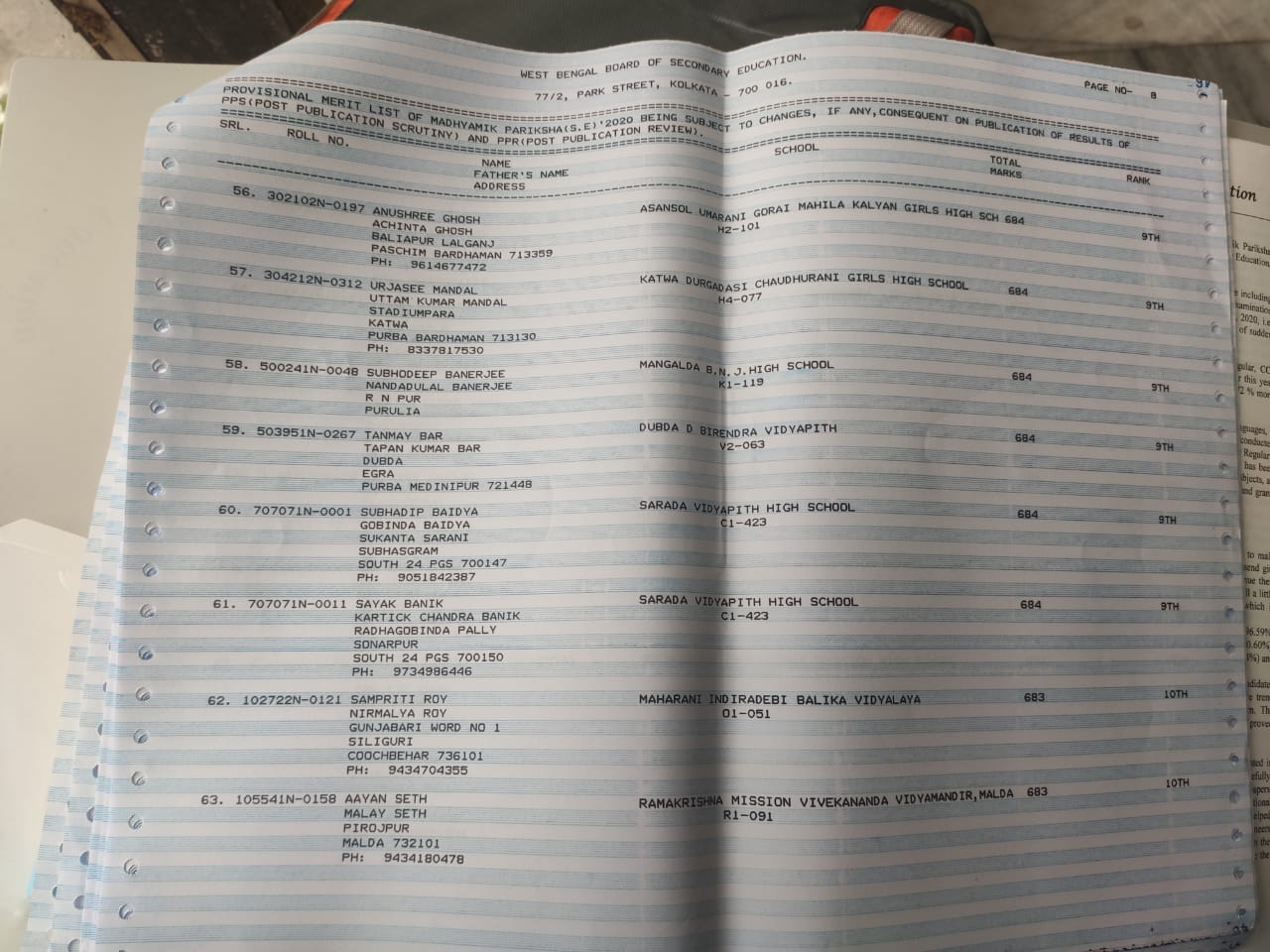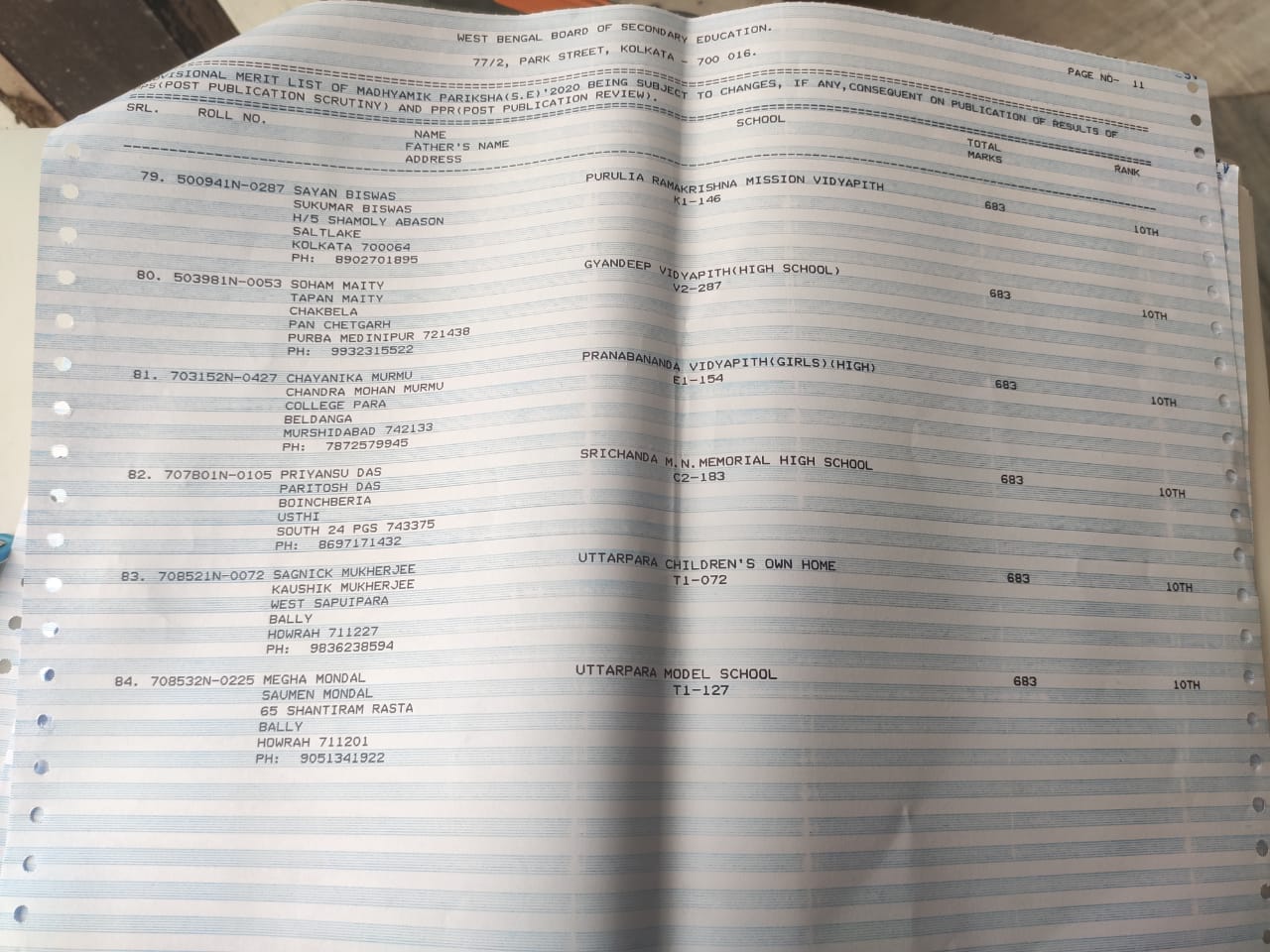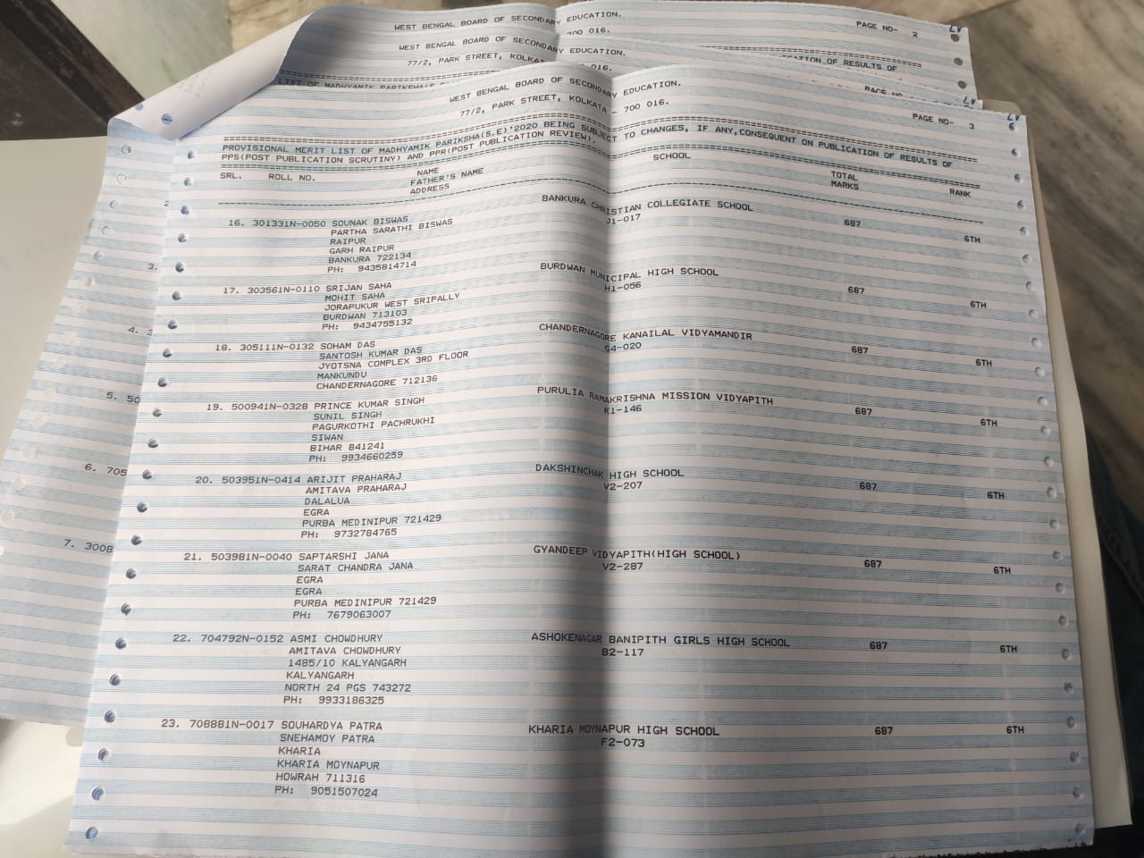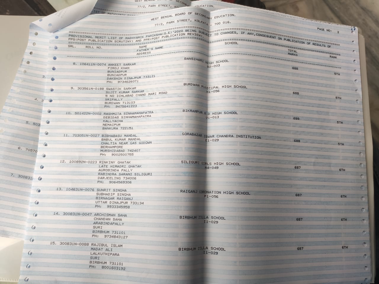 একনজরে মাধ্যমিকের মেধাতালিকা