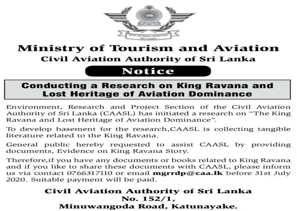 এই দাবিকে এবার স্বীকৃতি দিতে চায় শ্রীলঙ্কার সরকার৷ ইতিমধ্যে এ বিষয়ে গবেষণা শুরু করেছে শ্রীলঙ্কা। রাবণ সংক্রান্ত যে কোনও তথ্য, বই প্রমাণ আকারে থাকলে তা শ্রীলঙ্কার অসামরিক বিমান পরিবহন কর্তৃপক্ষের কাছে জমা দিতে আবেদন করেছে শ্রীলঙ্কা সরকারের পর্যটন ও বিমান পরিবহন মন্ত্রক। এক বিজ্ঞাপনে দেশের সরকার জানিয়েছে,