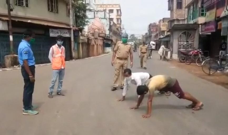 সংক্রমণের চেন ভাঙতে সপ্তাহে দু’দিন করে কড়া লকডাউনের নির্দেশ দিয়েছেন মুখ্যমন্ত্রী মমতা বন্দ্যোপাধ্যায়। আর সেই নির্দেশ উপেক্ষা করে বিনা কারণে রাস্তায় বেরোলে শাস্তি মিলছে হাতেনাতে। কোথাও লাঠিরবাড়ি, কোথাও সাইকেলের চাকার হাওয়া খুলে নেও,য়া আবার কোথাও কান ধরে উঠবস করতে হচ্ছে আইন ভঙ্গকারীদের। তবে, এবার অভিনব কায়দায় শাস্তি দিল হুগলি জেলা পুলিশ। বুধবার এ সপ্তাহের সম্পূর্ণ লকডাউন। কিন্তু তা সত্ত্বেও বিনা কারণে যাঁরা রাস্তায় বেরিয়েছেন, মাস্ক পরেননি তাঁদের রীতিমতো রাস্তায় ডন বৈঠক করিয়েছেন পুলিশকর্মীরা।