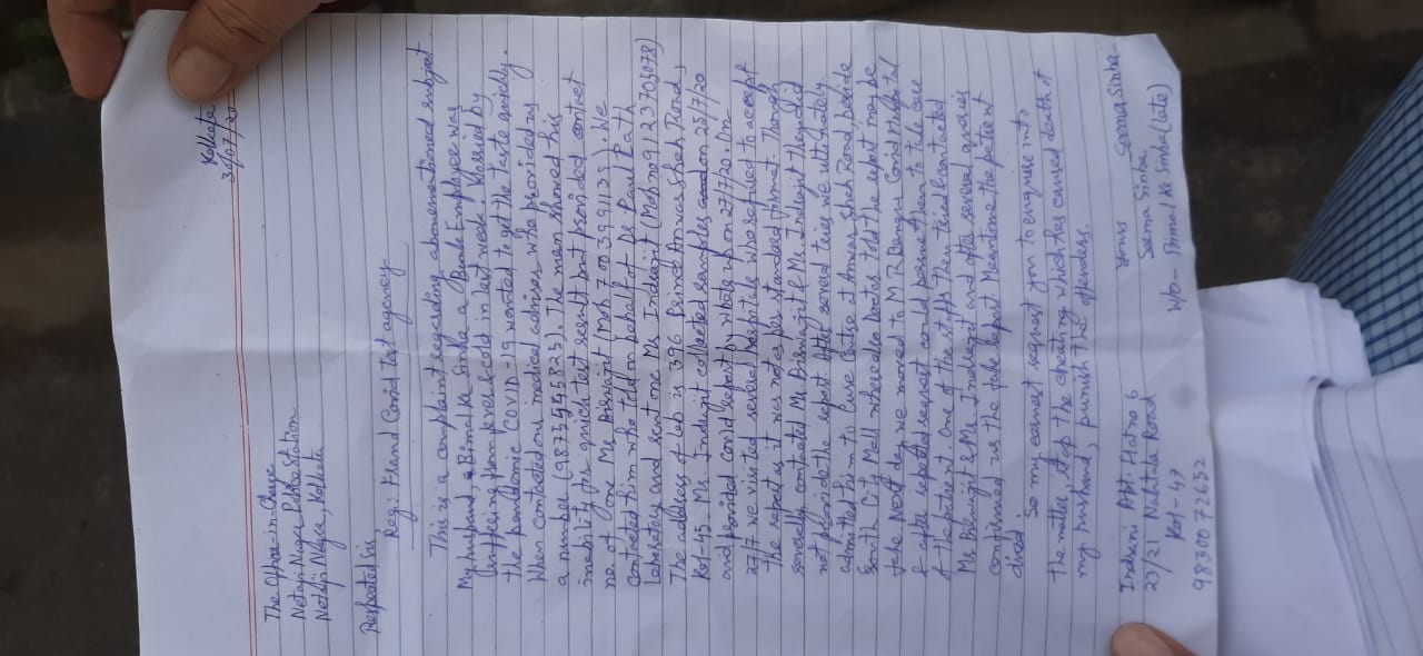 শরীরে বেশকিছু উপসর্গ নিয়ে ভুগতে থাকা দক্ষিণ কলকাতার নাকতলার বাসিন্দা বিমল সিনহা করোনা সন্দেহে নমুনা পরীক্ষার জন্য একটি ওয়েবসাইট মারফৎ একটি অনলাইন সংস্থার খোঁজ পান। পরিবারের লোক বিমলবাবুর নমুনা পরীক্ষার জন্য যোগাযোগ করেছিলেন ওই অনলাইন সংস্থার সঙ্গে। অনলাইন সংস্থার দাবি ছিল, তারা নাকি ICMR অনুমোদিত কোভিড-১৯ টেস্ট করার জন্য একটি বেসরকারি সংস্থা।
