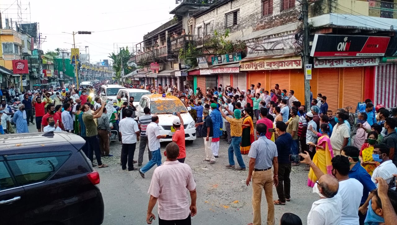 ভাইরাস মুক্ত হয়ে বাড়ি ফিরলেন দিনহাটার তৃণমূল বিধায়ক উদয়ন গুহ। কোচবিহারের ঘুঘুমারি থেকে তাঁর আনুগামীরা প্রায় এক হাজার বাইকের ব়্যালি করে দিনহাটায় পৌঁছতেই ব্যান্ড বাজিয়ে, বাজি ফাটিয়ে, পুষ্প বৃষ্টিতে কার্যত রাজকীয় সংবর্ধনায় স্বাগত জানান কর্মী সমর্থকরা। কয়েক হাজার দলীয় কর্মী-সমর্থকদের ভিড়ে এদিন বিকালে সামাজিক দূরত্বের বিধি শিকেয় ওঠে।