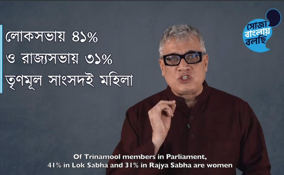 মহিলাদের ক্ষমতায়নের ক্ষেত্রে বাংলা এক নম্বরে- খতিয়ান দিয়ে ‘সোজা বাংলায় বলছি’-র ষষ্ঠ এপিসোডে জানালেন তৃণমূল সাংসদ ডেরেক ও ব্রায়েন। বুধবারের পর শুক্রবার তৃণমূলের ভার্চুয়াল প্রচার ‘সোজা বাংলায় বলছি’-র ষষ্ঠ পর্ব প্রচারিত হয়। সেখানে তৃণমূল সাংসদ ডেরেক ও’ব্রায়েন জানান, লোকসভায় 41% রাজ্যসভায় 31 শতাংশ তৃণমূল সাংসদই মহিলা। বাংলায় বহু মহিলা শিল্পোদ্যোগী রয়েছেন। পঞ্চায়েতের সব স্তরে মহিলাদের জন্য 50 শতাংশ আসন সংরক্ষিত। শুধু তাই নয়, এনসিআরবি-র রিপোর্ট অনুযায়ী, গত দু’বছর মহিলাদের জন্য সবচেয়ে নিরাপদ শহর।
