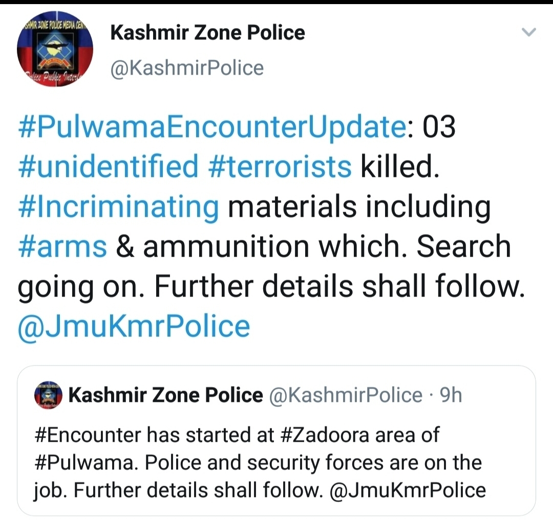ফের কাশ্মীরে সেনা-জঙ্গি গুলির লড়াই। ঘটনায় বড়সড় সাফল্য যৌথ বাহিনীর। শোপিয়ানে কিলুরা গ্রামে সংঘর্ষে ৪ জঙ্গিকে নিকেশ করেছে পুলিশ ও কেন্দ্রী বাহিনী৷ এক জঙ্গি আত্মসমর্পণ করেছে বলেও দাবি কাশ্মীর পুলিশের। জঙ্গি আত্মসমর্পণের ঘটনা কাশ্মীরের সাম্প্রতিক ইতিহাসে নজিরবিহীন বলা চলে। অন্যদিকে, পুলওয়ামাতেও জঙ্গিদের সঙ্গে কেন্দ্রীয় নিরাপত্তা বাহিনীর গুলির লড়াই চলছে৷