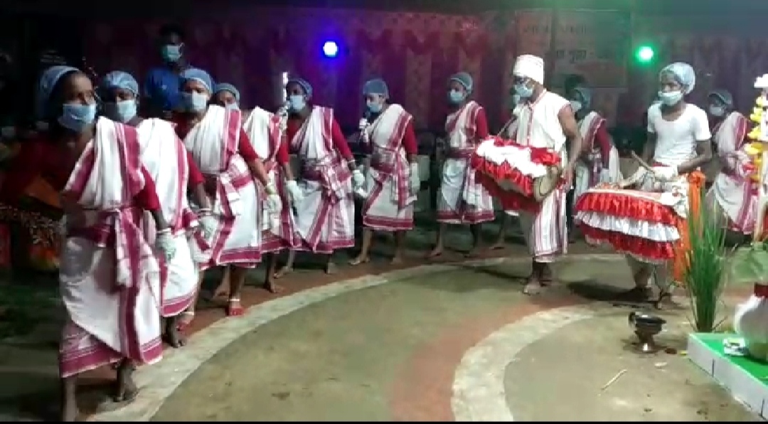 শনিবার রাতে বালুরঘাটের বদলপুরে করম পুজো অনুষ্ঠানে হাতে গ্লাভস মুখে মাক্স পড়ে ধামসা ও মাদল বাজিয়ে আদিবাসী সম্প্রদায়ের মানুষ সামাজিক দূরত্ব মেনে নৃত্যে অংশ নেন। করোনা পরিস্থিতির মধ্যেও এই করম পুজো উপলক্ষ্যে আদিবাসী ওঁরাও সম্প্রদায়ের মানুষের উৎসাহ ছিল দেখার মত।