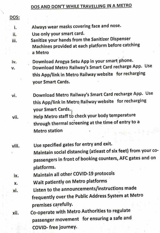 এক নজরে মেট্রো রেলের নিয়মাবলী–