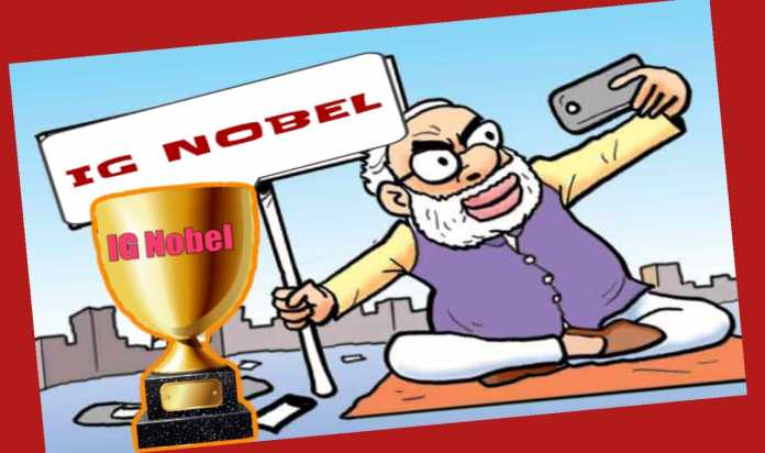 এ বছর এই IG Nobel পুরস্কার দেওয়া হলো ভারতের প্রধানমন্ত্রী নরেন্দ্র মোদিকে৷ ব্যঙ্গার্থক এই পুরস্কারের জন্য মোদির থেকে ‘যোগ্য’ ব্যক্তি ওই কমিটি গোটা দুনিয়ায় আর কাউকে পায়নি৷ মোদি ভারতের দ্বিতীয় প্রধানমন্ত্রী, যিনি এই পুরস্কার পেলেন। ১৯৯৮ সালে প্রথম ভারতীয় প্রধানমন্ত্রী হিসেবে অটলবিহারী বাজপেয়ী এই নোবেল পুরস্কার পেয়েছিলেন। ‘আগ্রাসী শান্তিপূর্ণ’ ভাবে পরমাণু অস্ত্র পরীক্ষার জন্য। এবার সেই তালিকায় নাম যুক্ত হলো বিজেপির দ্বিতীয় প্রধানমন্ত্রী মোদি।