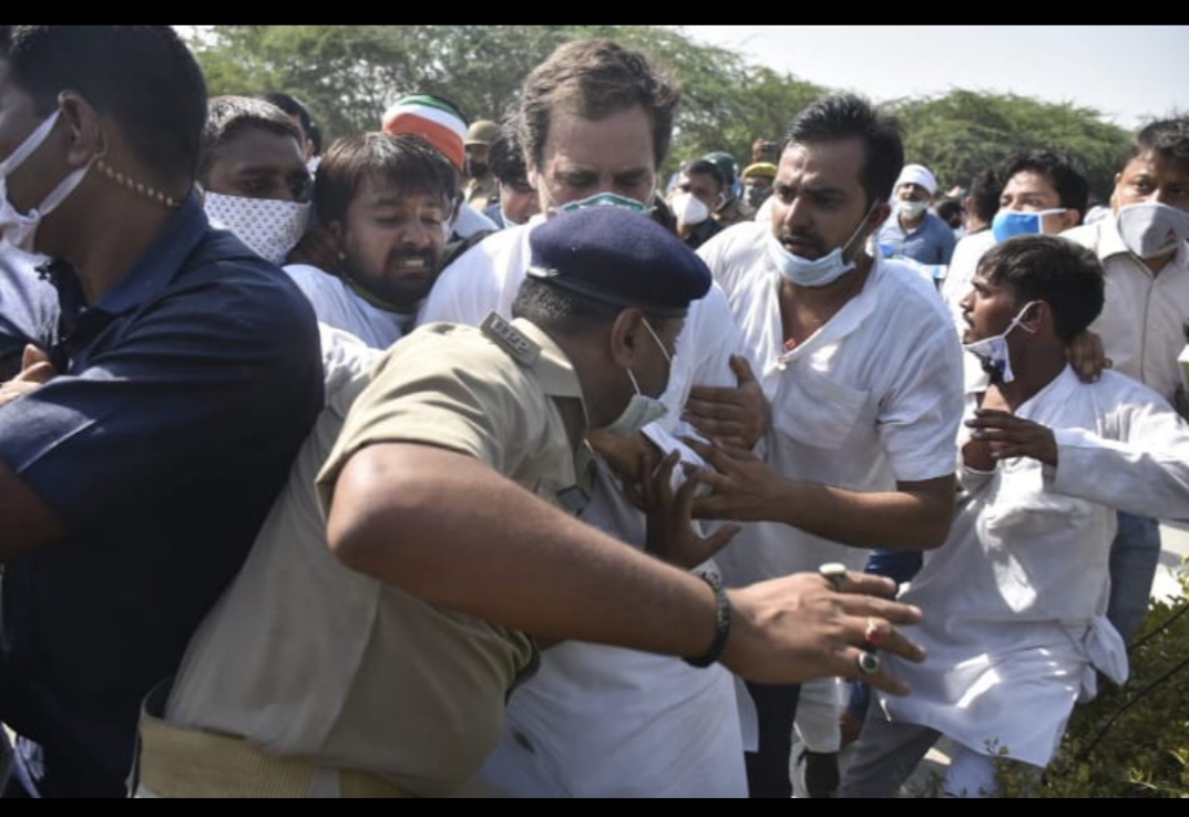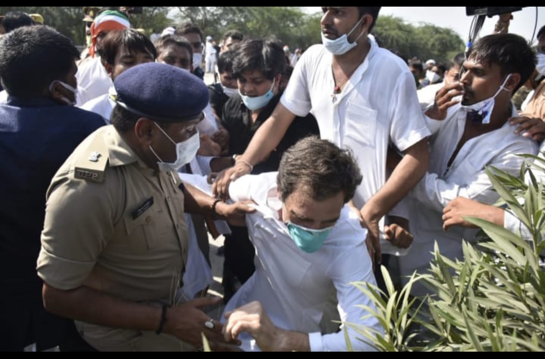 হাথরাসে ধর্ষিত ও নিহত দলিতকিশোরীর বাড়ি যাওয়ার পথে রাহুল- প্রিয়াঙ্কাসহ কংগ্রেসকর্মীদের উপর তান্ডব চালালো উত্তরপ্রদেশ পুলিশ। যমুনা এক্সপ্রেসওয়েতে। রাহুল একসময় গাড়ি ছেড়ে হাঁটতে শুরু করেন। পুলিশ ধাক্কা মারে। রাহুল পড়ে যান। এরপর রাহুল, প্রিয়াঙ্কাকে আটক করে বুদ্ধ সার্কিট গেস্ট হাউসে নিয়ে যায় পুলিশ। পুলিশ কংগ্রেস কর্মীদের উপর লাঠি চায়। অনেকে জখম হন। মাথা ফাটে। মহিলারাও রেহাই পাননি। অনেককে আটক করে নিয়ে যায় পুলিশ। বিশাল বাহিনী তাণ্ডব করে। লোকসভার দলনেতা অধীর চৌধুরীও এসে উপস্থিত হন।