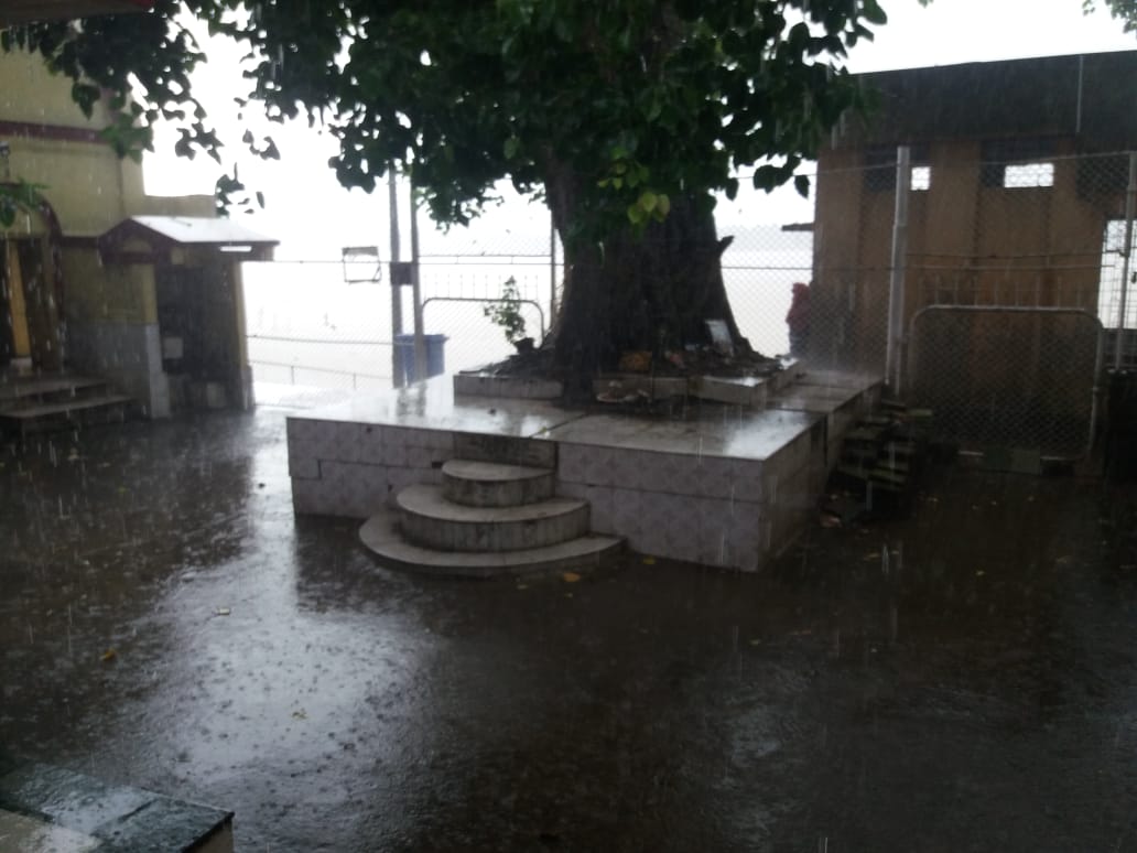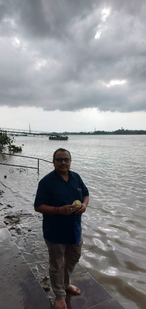 এপাশে মাতৃমূর্তি। ওপাশে বৃষ্টিতে ঝাপসা গঙ্গা। তার মধ্যে পুরোহিতের মন্ত্র ও ঘন্টাধ্বনি।