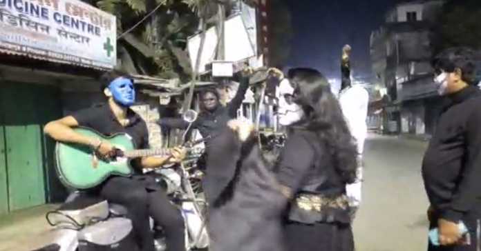 ঘড়িতে তখন রাত ১২ টা বা ১টা। শুনশান রায়গঞ্জ শহরের রাজপথ। আচমকাই আলো ঝলমলে শুনশান রাজপথে একদল ভূতের দাপাদাপি। আবার সেই ভূতের দলই রাস্তায় দাঁড়িয়ে গানবাজনা ও নাচও করছেন। কিছু মানুষ যাঁরা তখনও রাস্তায় ভূত দেখে কিছুটা আতঙ্কিত। ভুল ভাঙল কিছুক্ষণ পর। যখন সেই ভূতের দলই তাঁদের হাতে তুলে দিলেন চকোলেট-সহ নানা উপহার। আসলে পশ্চিমী সংস্কৃতি মেনে রায়গঞ্জ শহরের একদল যুবক-যুবতী পালন করলেন “হ্যালোইন ডে “। জানালেন স্থানীয় বাসিন্দাদের আনন্দ দেওয়ার জন্যই ‘হ্যালোইন ডে পালন’। করোনা আবহে এবার রাস্তায় তেমন মানুষ না পাওয়া যাওয়ায় কিছুটা হলেও ফিকে হয়েছে এবারে তাদের এই মজা।