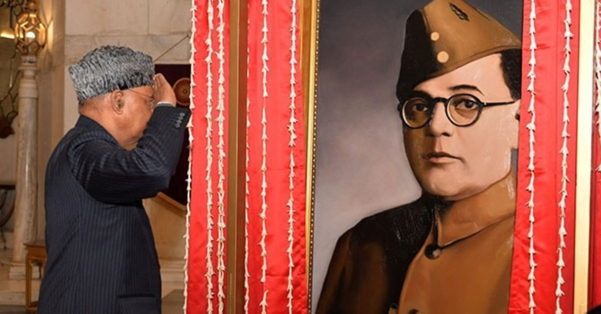 বাংলার বিধানসভা ভোটের আগে বাঙালি জাত্যভিমানকে উসকে দিতে নেতাজি সুভাষচন্দ্র বসু (netaji subhash chandra basu)এখন রাজনৈতিক হাতিয়ারে পর্যবসিত হয়েছেন। নেতাজি জন্মজয়ন্তীর অনুষ্ঠানে ভিক্টোরিয়া মেমোরিয়ালে প্রধানমন্ত্রী নরেন্দ্র মোদির সামনেই অপ্রাসঙ্গিকভাবে জয় শ্রী রাম শ্লোগান তুলে মুখ্যমন্ত্রী মমতা বন্দ্যোপাধ্যায়কে উত্যক্ত করার চেষ্টা দেখেছে রাজ্যবাসী। নেতাজি প্রতি শ্রদ্ধাজ্ঞাপন অনুষ্ঠানে বিজেপির রাজনৈতিক শ্লোগান-রাজনীতি ঘিরে যখন বিতর্ক চরমে, তখন দিল্লিতে রাষ্ট্রপতি ভবনের (rashtrapati bhavan) এক তৈলচিত্র (portrait) নিয়ে শোরগোল শুরু হয়েছে।