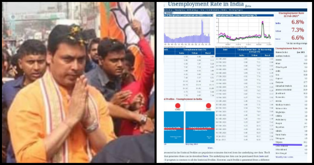 বেকারত্বের সূচকে ত্রিপুরা দেশের দ্বিতীয় অথচ রাজ্যে নির্বাচনী প্রচারে এসে মুখ্যমন্ত্রী বিপ্লব দেব উন্নয়নের বাক্যবাণে রাজ্যে তৃণমূল কংগ্রেস সরকারের প্রবল সমালোচনা করছেন। বিপ্লববাবুর দাবি, বিজেপির আমলে অপরাধ সূচকে পশ্চিমবঙ্গের তুলনায় ভালো অবস্থানে রয়েছে ত্রিপুরা।