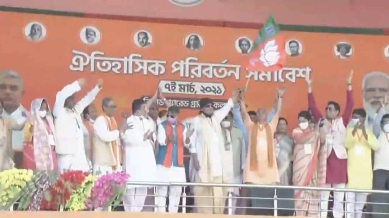 বৃত্ত সম্পূর্ণ হলো। বাম-তৃণমূল হয়ে এবার বিজেপির হাত ধরলেন টলি-বলির সুপারস্টার “মহাগুরু” মিঠুন চক্রবর্তী। নরেন্দ্র মোদির ব্রিগেড সমাবেশেই বিজেপিতে যোগ দিলেন মিঠুন চক্রবর্তী। তবে, মোদির আসার আগেই বিজেপির রাজ্য সভাপতি দিলীপ ঘোষের হাত থেকে বিজেপির পতাকা তুলে নিলেন মিঠুন। ফলে বিজেপির মুখ্যমন্ত্রী পদপ্রার্থী কি মিঠুনই, এই জল্পনা আবারও জল হাওয়া পেল।