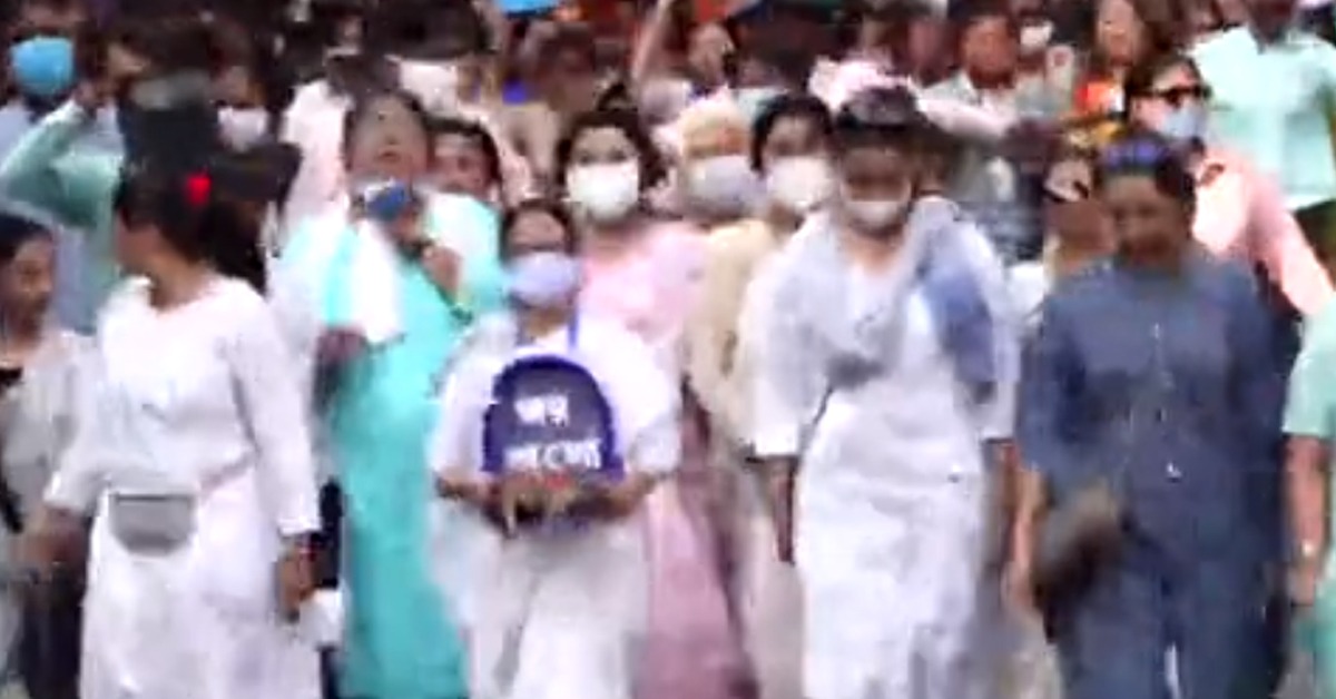 পেট্রোল-ডিজেল(petrol diesel) ও গ্যাসের মূল্য বৃদ্ধির প্রতিবাদে বিগত কয়েক দিন ধরে লাগাতার আন্দোলন চালিয়ে যাচ্ছেন রাজ্যের মুখ্যমন্ত্রী মমতা বন্দ্যোপাধ্যায়। সোমবার মহিলা ব্রিগেড সঙ্গে নিয়ে কলেজস্ট্রিট থেকে প্রতিবাদী পদযাত্রা শুরু করেন তিনি। বিশাল জনসমাগম সহ তৃণমূলের এই পদযাত্রা শেষ হয় ডোরিনা ক্রসিংয়ে। নারী দিবস উপলক্ষে মুখ্যমন্ত্রী মমতা বন্দ্যোপাধ্যায় সহ এই পদযাত্রায় সামনের সারিতে ছিলেন, তৃণমূল প্রার্থী জুন মালিয়া, সায়ন্তিকা, মানালি, সুদেষ্ণা রায়, লাভলি মৈত্র, কৌশানী ও আরও অনেক তারকা। পাশাপাশি ছিলেন তৃণমূল সাংসদ মিমি ও নুসরত জাহান। ডোরিনা ক্রসিংয়ে পদযাত্রা শেষ করার পর চাঁচাছোলা ভাষায় বিজেপিকে আক্রমণ চালাতে দেখা যায় মমতাকে।