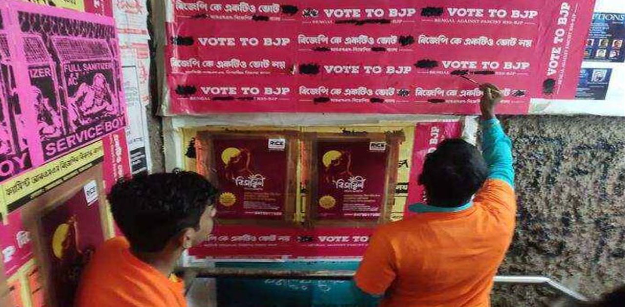 কয়েকদিন আগে কফি হাউসের চারপাশে ‘নো ভোট টু বিজেপি লেখা পোস্টারে ছেয়ে গিয়েছে। সোমবার তারই প্রতিবাদে একদল বিজেপি সমর্থক গেরুয়া টি-শার্ট গায়ে ঢুকে পড়েন কলেজ স্ট্রিটের কফি হাউসে। তারপর সেখানকার পোস্টার ছিঁড়ে ফেলেন। আবার অনেক পোস্টারে কালি লেপে দেন। উত্তাল হয়ে ওঠে পরিস্থিতি। প্রশ্ন ওঠে, গেরুয়া টি-শার্ট গায়ে চাপিয়ে একদল যুবক এসে কফি হাউসের মতো জায়গায় ‘তাণ্ডব’ করার সাহস পায় কীভাবে? কেন মেনে নেওয়া হবে এই ‘দাদাগিরি’?