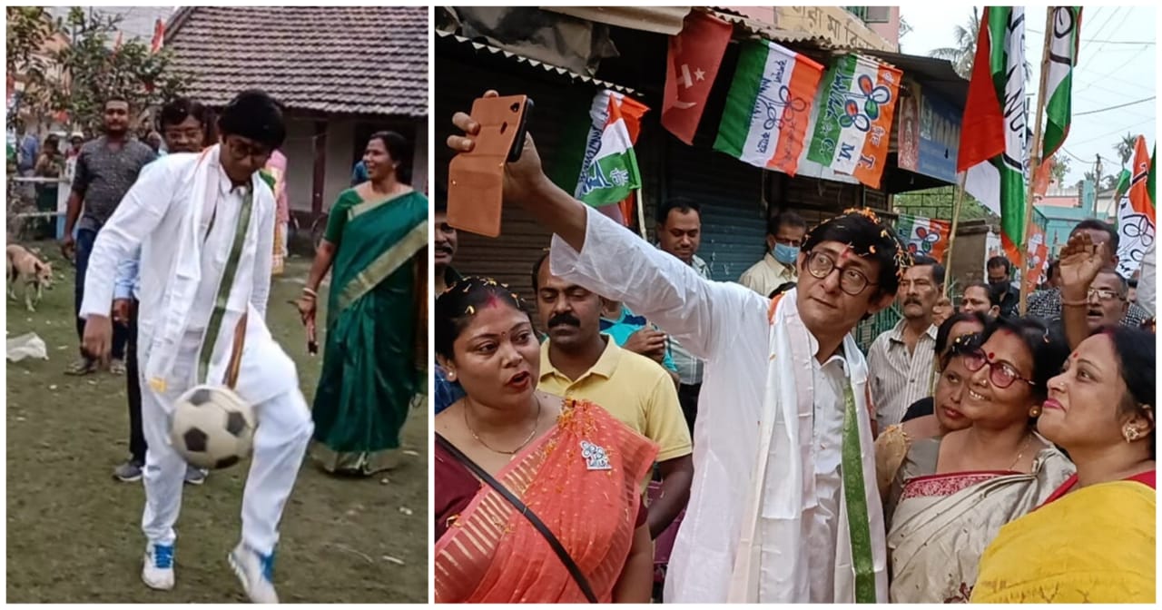 উত্তরপাড়া (Uttorpara) বিধানসভা কেন্দ্রের নবগ্রাম এলাকায় ‘খেলা হবে’ স্লোগানের তুলে ফুটবল খেলে প্রচার সারলেন তৃণমূলের (Tmc) তারকা প্রার্থী কাঞ্চন মল্লিক (Kanchan Mallik)। যেদিন চুঁচুড়ায় তৃণমূল নেত্রী মমতা বন্দ্যোপাধ্যায়ের (Mamata Bandopadhyay) সভায় যোগদান করেছিলেন সেদিন অভিনেতা কাঞ্চন মল্লিকের গলায় শোনা গিয়েছিল ‘খেলা হবে’ স্লোগান। আর শুক্রবার নবগ্রামে ভোটের প্রচারে গিয়ে কর্মী-সমকর্থকদের সঙ্গে মাঠে নেমে ফুটবল (Football) খেললেন কাঞ্চন।