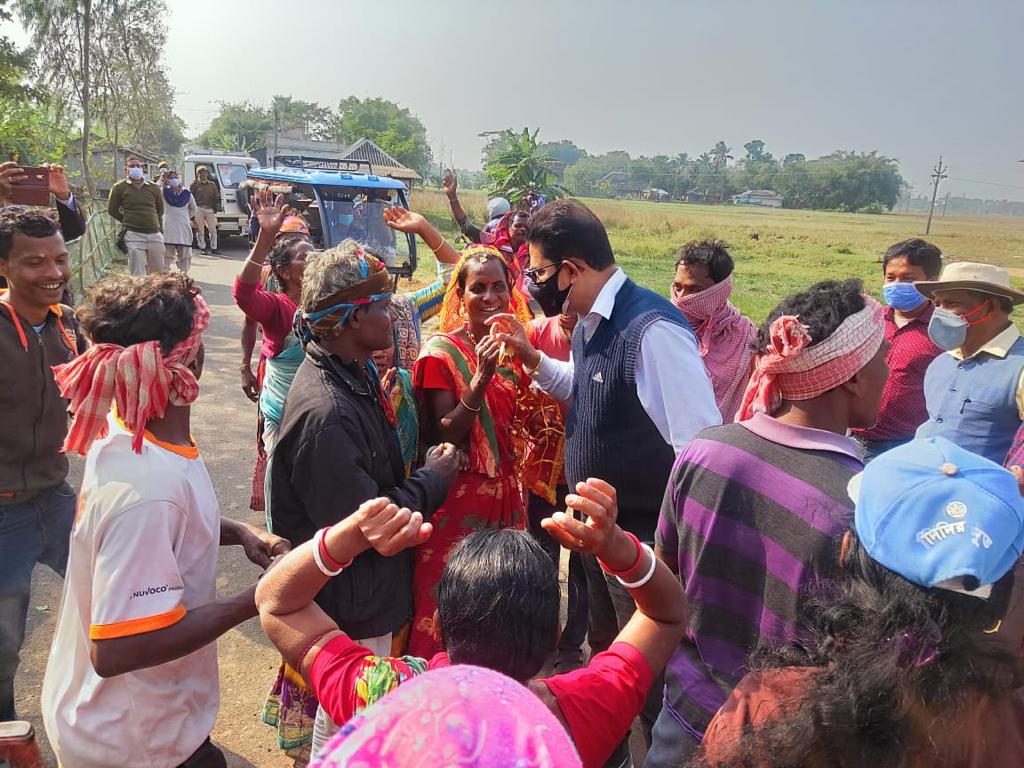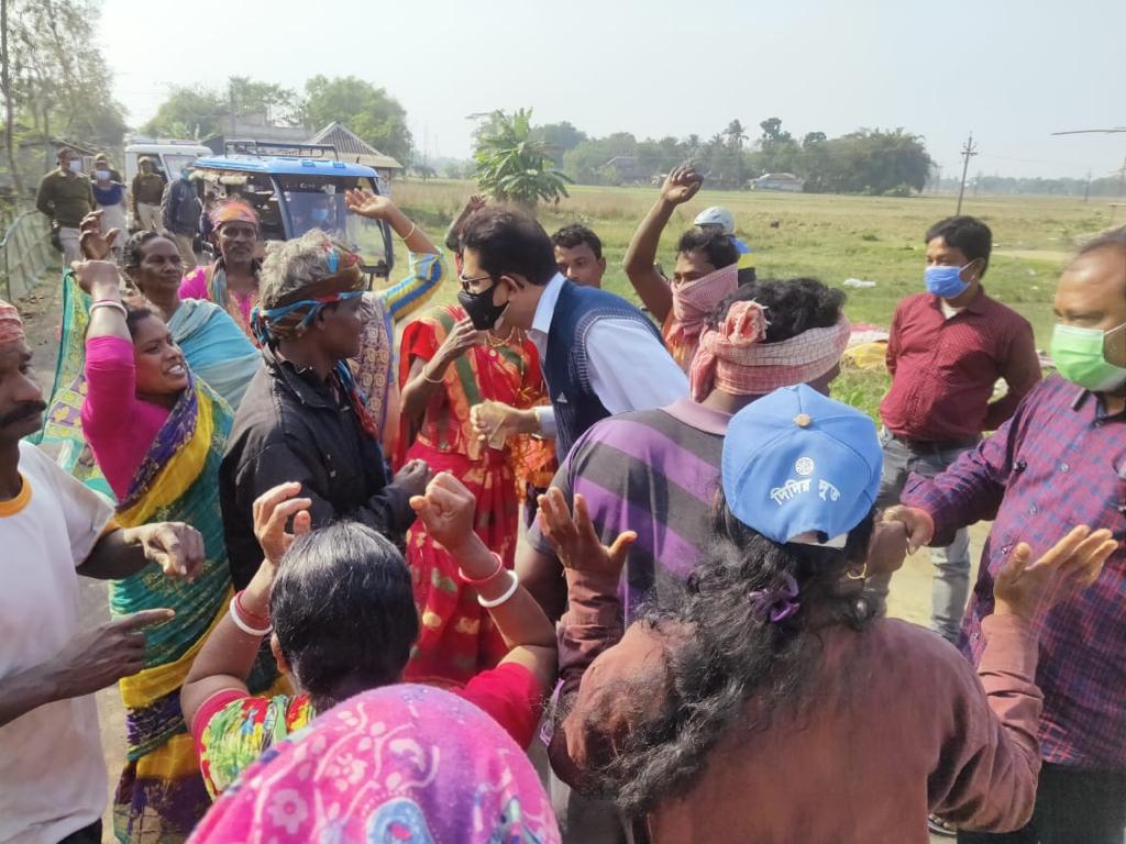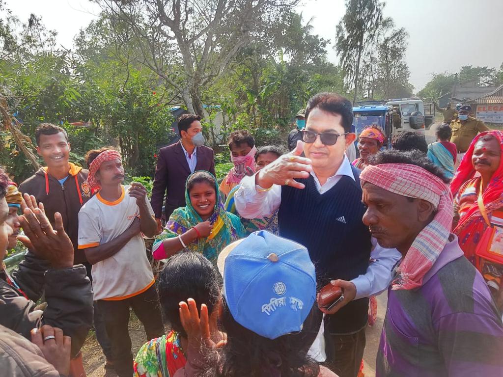 রাজ্যের মন্ত্রী। তবে, নিজের বিধানসভা এলাকায় তিনি ভূমিপুত্র। ফলে, টুসু উৎসবের দিনে এক অভিনব দৃশ্য দেখল ডেবরা (Debra) বিধানসভা কেন্দ্রের ডুয়া বালিচক। শনিবার, এলাকায় একটি উন্নয়ন সংক্রান্ত বৈঠকে যান এলাকার বিধায়ক তথা রাজ্যের মন্ত্রী ডক্টর হুমায়ুন কবীর (Dr Humayun Kabir)। সেখানে উপস্থিত ছিলেন স্থানীয় পঞ্চায়েতের প্রতিনিধিরা। ছিলেন বিরোধীদলের প্রতিনিধি-সহ সাধারণরাও। ফেরার সময় টুসু উৎসব (Tusu Festival) চলাকালীন রাস্তার উপর মন্ত্রীকে দেখার জন্য ভিড় জমান এলাকার মানুষ। সেখানে মানুষদের সঙ্গে কথা বলতে নামেন হুমায়ুন কবীর। মন্ত্রীকে এভাবে কাছে পেয়ে তাঁকে নাচের জন্য অনুরোধ করেন স্থানীয়রা। মন্ত্রীমশাইও রাস্তার উপরেই গাড়ি রেখে এলাকার মানুষের সঙ্গে একেবারেই ঘরের ছেলের মতো নাচের তালে পা মেলান।