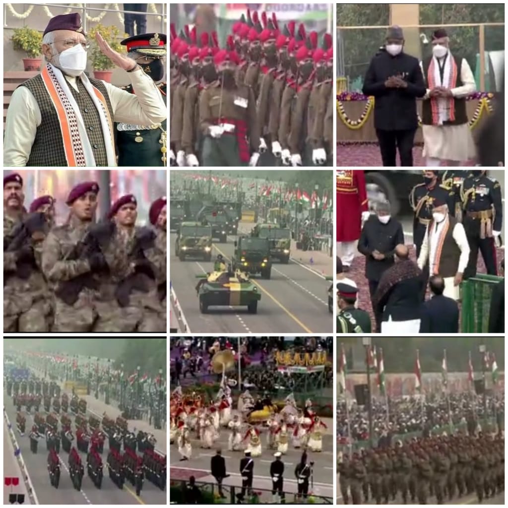৭৩ তম সাধারণতন্ত্র দিবস(Republic Day) পালন করছে দেশ। বিশেষ এই দিনে দিল্লির(Delhi) ঐতিহাসিক রাজপথে দেখা গেল শক্তি, সমৃদ্ধি ও সংস্কৃতির ঝলক। অন্যান্যবারের তুলনায় এবার বেশ কিছু নতুনত্বের চমক ছিল সাধারণতন্ত্র দিবসের প্যারেড অনুষ্ঠানে। যার মধ্যে অন্যতম আকর্ষণ ৭৫ বিমান ও হেলিকপ্টারের ফ্লাইপাস্ট। রাষ্ট্রপতি-প্রধানমন্ত্রী(President and Prime Minister) সহ অন্যান্য অতিথিদের উপস্থিতিতে বুধবার সম্পন্ন হয় এই অনুষ্ঠান। করোনাবিধি মেনে এবারের অনুষ্ঠানে সাধারণের উপস্থিতির উপর ছিল নিষেধাজ্ঞা। পাশাপাশি কমিয়ে আনা হয় অনুষ্ঠানের সময়ও।