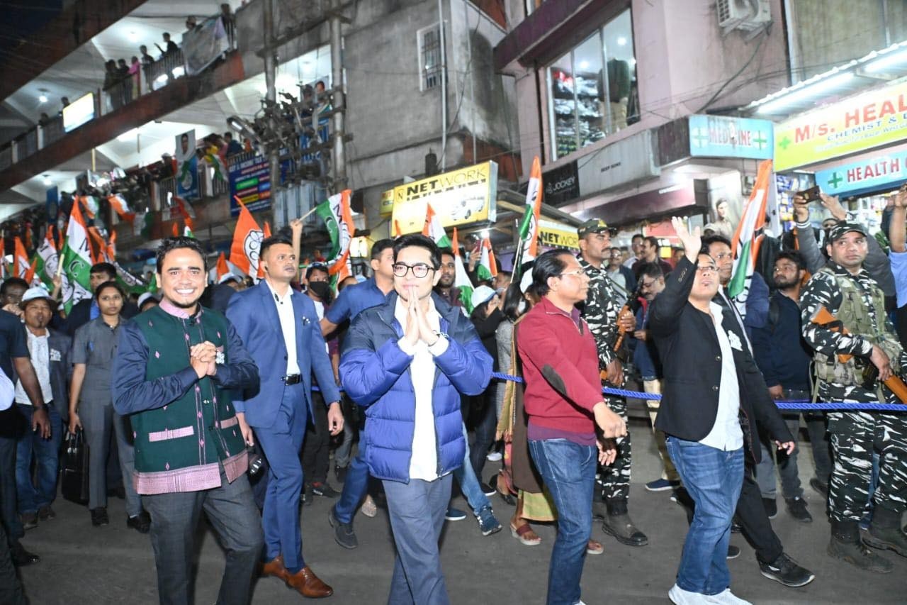 নির্বাচনী প্রচারে বর্তমানে মেঘালয়ে রয়েছেন অভিষেক বন্দ্যোপাধ্যায়। গোটা রাজ্যজুড়ে তৃণমূল প্রার্থীদের সমর্থনে একের পর এক কর্মসূচি ও জনসভা করছেন তিনি। অভিষেকের এই জনসভায় যতদূর চোখ যায় সেখানে শুধুই তৃণমূলের পতাকা হাতে মানুষের ভিড়। বুধবার তুরায় পদযাত্রা ও জনসভার পর। বৃহস্পতিবার গারো পাহাড়ের আমপাতি ও উইলিয়ামনগরে অভিষেকের জনসভায় দেখা গেল একই ছবি। সভামঞ্চ থেকে যতদূর চোখ যায় দেখা যাচ্ছে নতুন মেঘালয়ের স্বপ্ন বুকে নিয়ে ভিড় জমাচ্ছেন কাতারে কাতারে মানুষ। মেঘালয়ে তৃণমূলের প্রতি মানুষের উৎসাহ-উদ্দীপনা থেকে রাজনৈতিক মহলের অনুমান পরিবর্তনের অঙ্ক কষা শুরু হয়ে গিয়েছে মেঘালয়ে। মানুষের ভিড়ের ছবিই কার্যত বুঝিয়ে দিচ্ছে বাংলার পর দ্বিতীয় কোনও রাজ্যে শাসকের আসনে পা রাখতে চলেছে ঘাসের উপর জোড়াফুল।